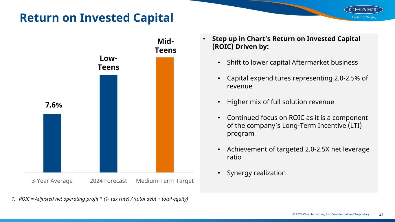 © 2024 Chart Industries, Inc. Confidential and Proprietary 20 Agenda Q1 2024 Results Key Drivers 2024 Outlook Medium Term Outlook