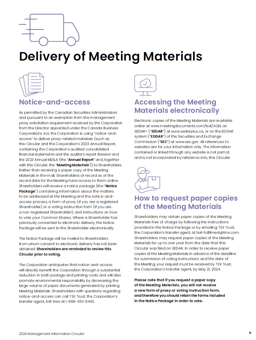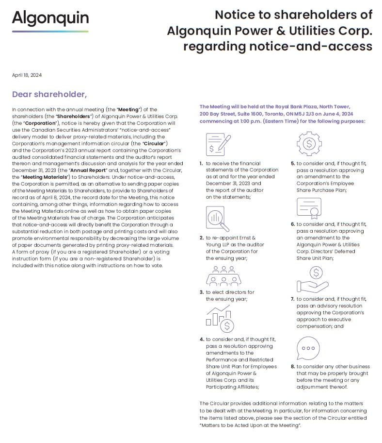 Notice and Access Notification to Shareholders