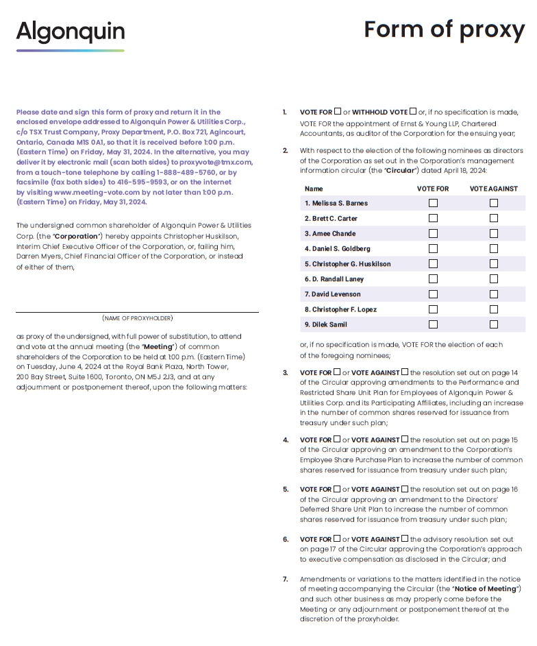 ALGONQUIN POWER & UTILITIES CORP.
