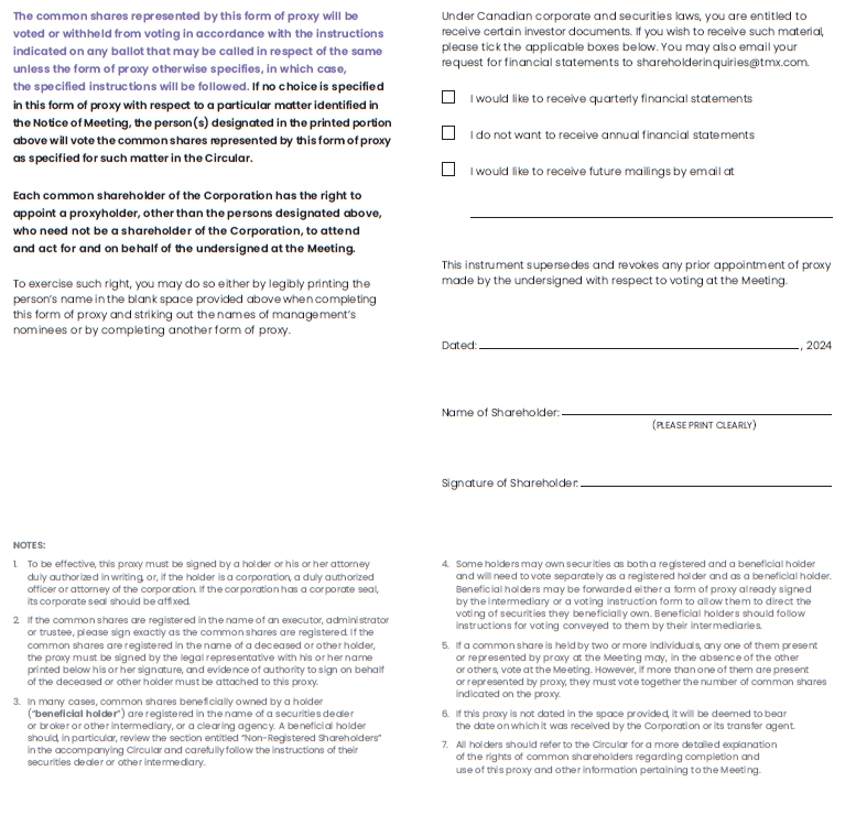 Form of Proxy to Registered Shareholders