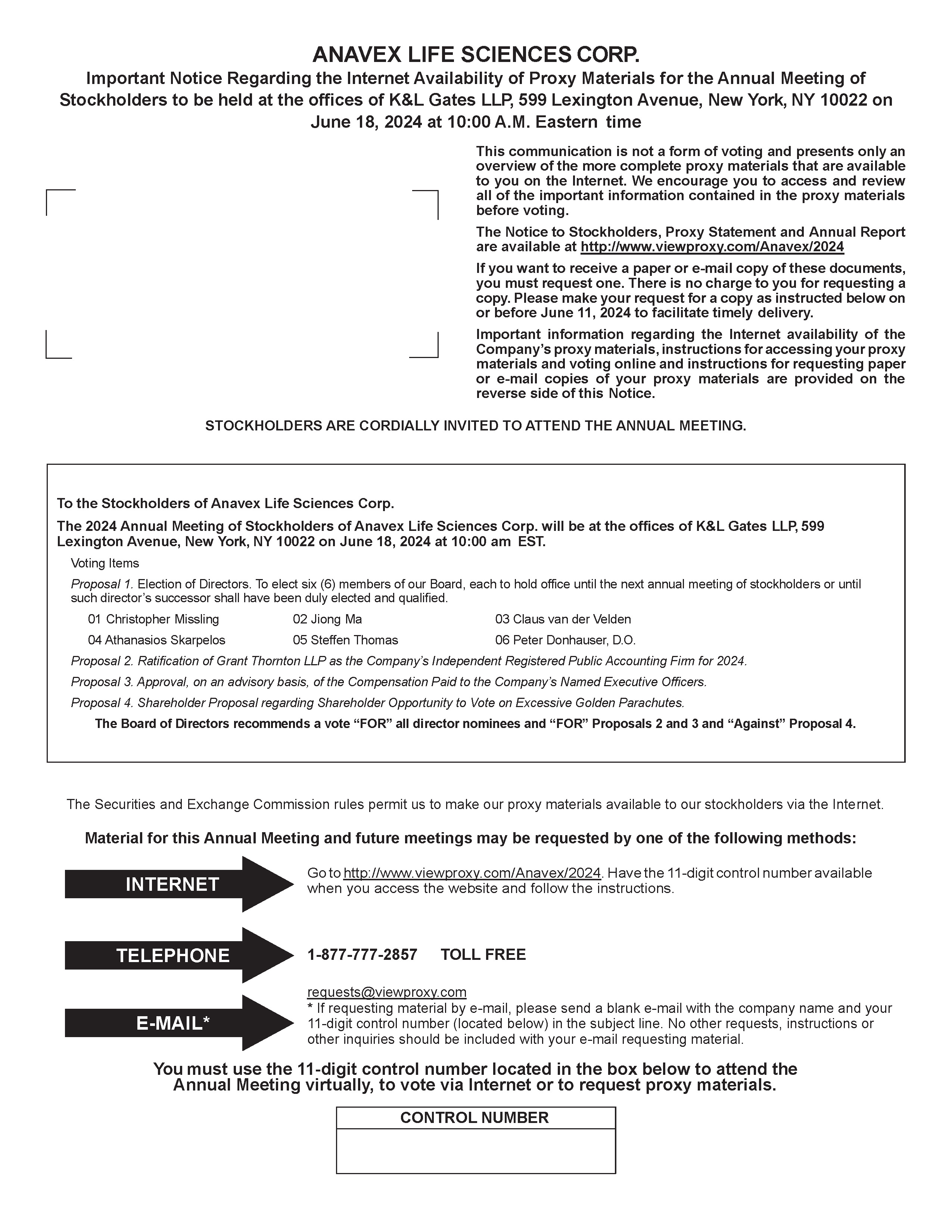 ANAVEX LIFE SCIENCES CORP.