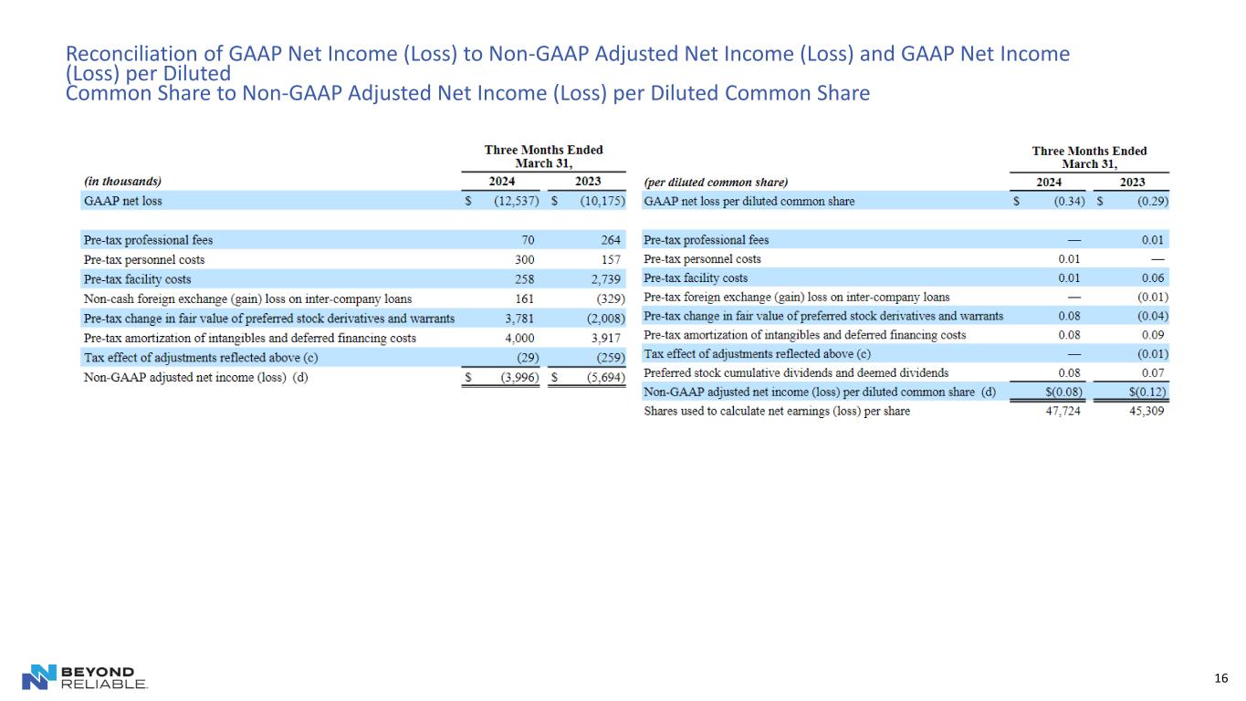 16 Reconciliation of GAAP Net Income (Loss) to Non-GAAP Adjusted Net Income (Loss) and GAAP Net Income (Loss) per Diluted Common Share to Non-GAAP Adjusted Net Income (Loss) per Diluted Common Share