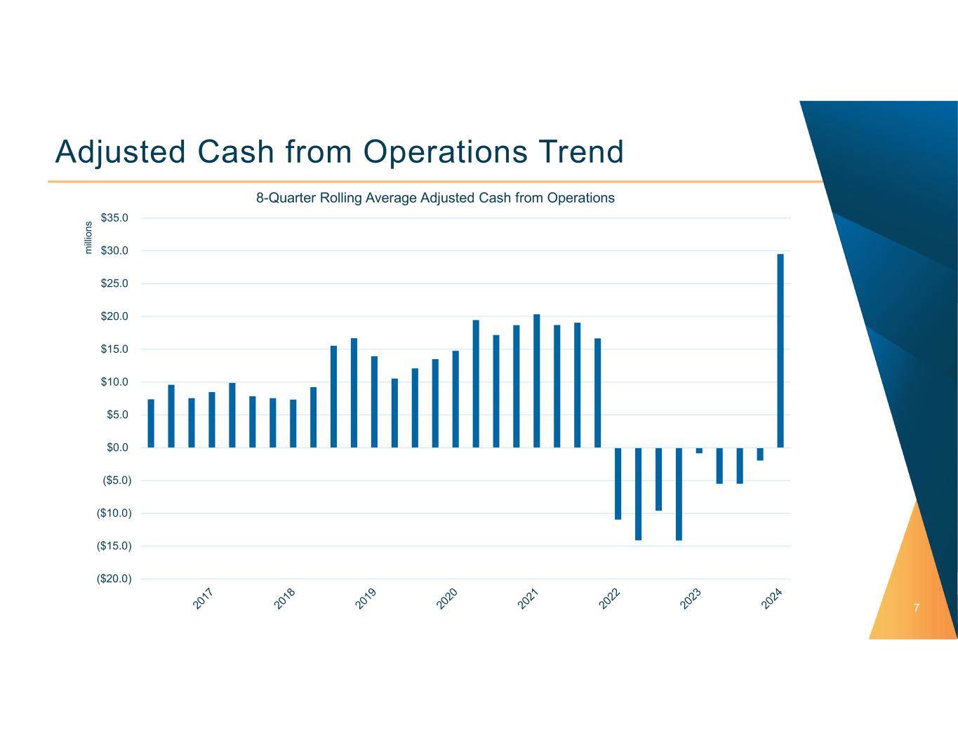 Adjusted Cash from Operations Trend 7 ($20.0) ($15.0) ($10.0) ($5.0) $0.0 $5.0 $10.0 $15.0 $20.0 $25.0 $30.0 $35.0 m ill io ns 8-Quarter Rolling Average Adjusted Cash from Operations
