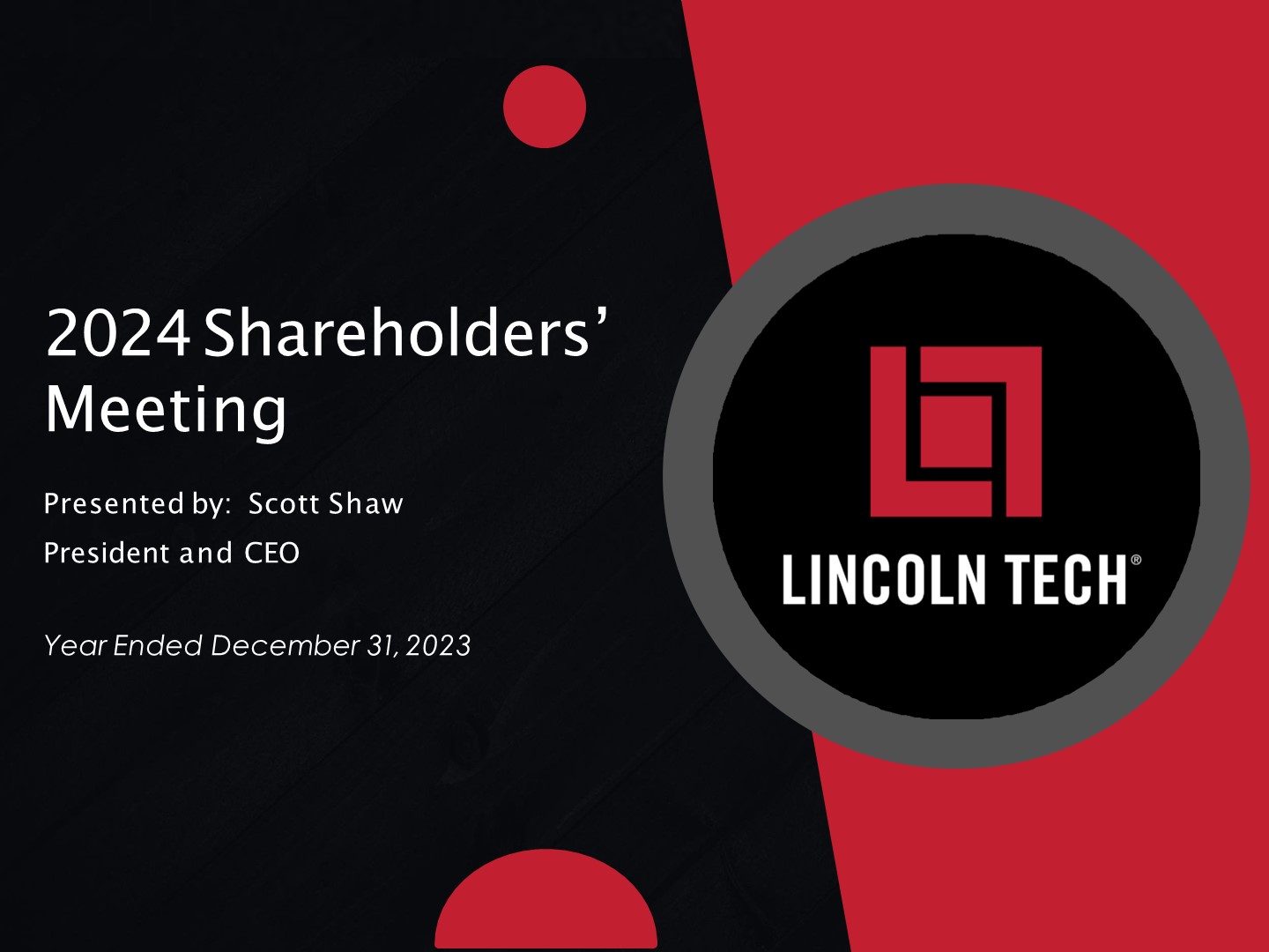 Meeting of Shareholders. A copy of the Shareholder Presentation, which is available on the Company’s website at www.lincolntech.edu under the tab “Investor Relations,” is attached hereto as Exhibit 99.1, and is incorporated herein by reference. The information contained under this Item 7.01, including Exhibit 99.1, is being furnished and shall not be deemed to be “filed” for purposes of Section 18 of the Securities Exchange Act of 1934, as amended, nor shall it be deemed incorporated
