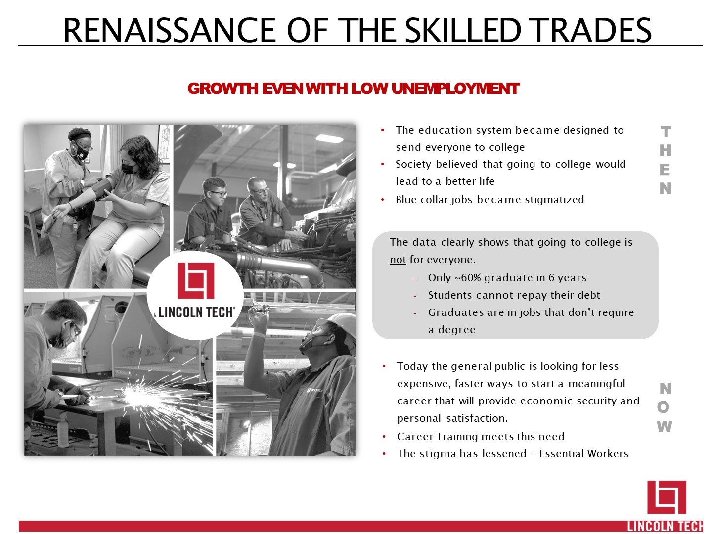 graduates and working adults career-oriented programs in five principal areas of study: automotive technology, health sciences, skilled trades, business and information technology, and hospitality services. Lincoln has provided the workforce with