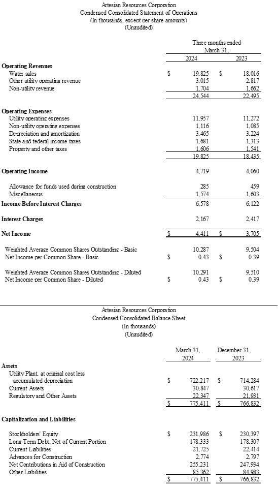 Newark, Delaware, May 6, 2024 – Artesian Resources