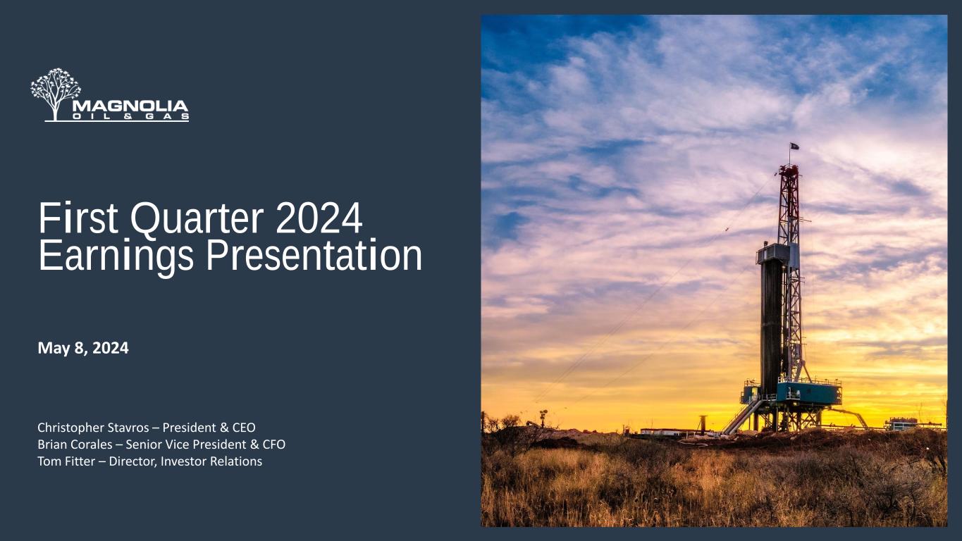 HOUSTON, TX, May 7, 2024 - Magnolia Oil & Gas Corporation (“Magnolia,” “we,” “our,” or the “Company”) (NYSE: MGY) today announced its financial and operational results for the first quarter of 2024.