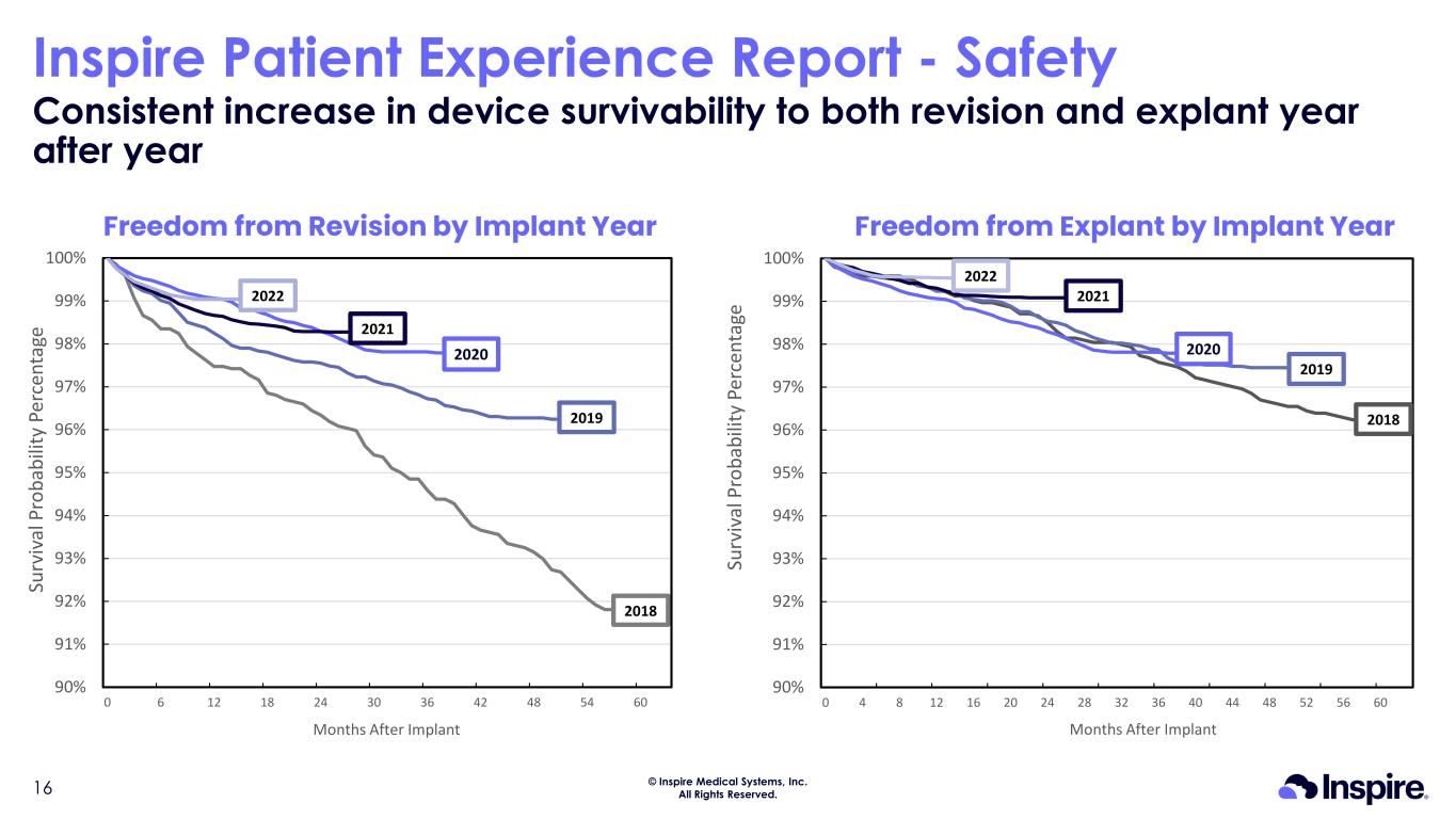 © Inspire Medical Systems, Inc. All Rights Reserved. 90% 91% 92% 93% 94% 95% 96% 97% 98% 99% 100% 0 6 12 18 24 30 36 42 48 54 60 Su rv iv al P ro ba bi lit y Pe rc en ta ge Months After Implant 2018 2019 2021 2022 90% 91% 92% 93% 94% 95% 96% 97% 98% 99% 100% 0 4 8 12 16 20 24 28 32 36 40 44 48 52 56 60 Su rv iv al P ro ba bi lit y Pe rc en ta ge Months After Implant 2018 2019 2021 2022 Inspire Patient Experience Report - Safety Consistent increase in device survivability to both revision and explant year after year 16 2020 2020 Freedom from Revision by Implant Year Freedom from Explant by Implant Year