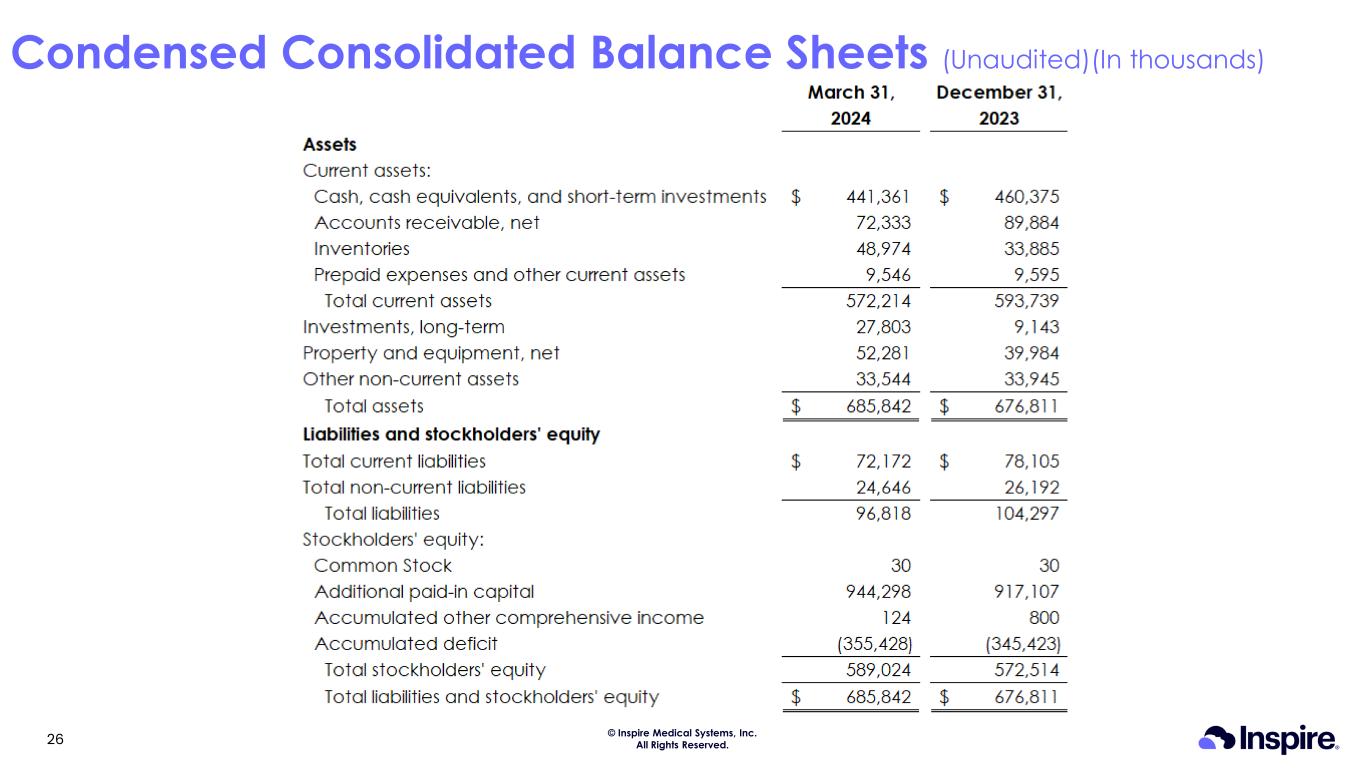 © Inspire Medical Systems, Inc. All Rights Reserved. Condensed Consolidated Balance Sheets (Unaudited)(In thousands) 26