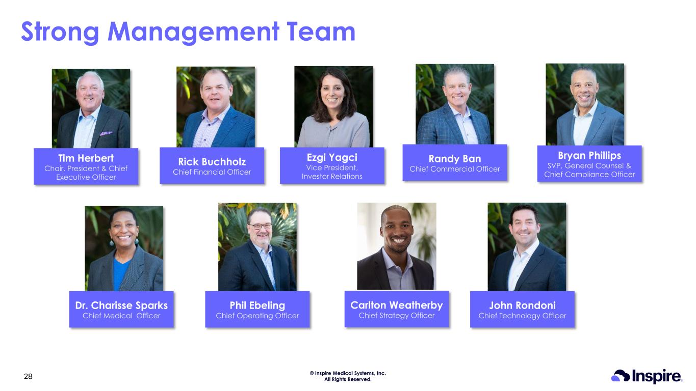 © Inspire Medical Systems, Inc. All Rights Reserved. Randy Ban Chief Commercial Officer Bryan Phillips SVP, General Counsel & Chief Compliance Officer Tim Herbert Chair, President & Chief Executive Officer Strong Management Team Ezgi Yagci Vice President, Investor Relations Rick Buchholz Chief Financial Officer John Rondoni Chief Technology Officer Phil Ebeling Chief Operating Officer Carlton Weatherby Chief Strategy Officer Dr. Charisse Sparks Chief Medical Officer 28