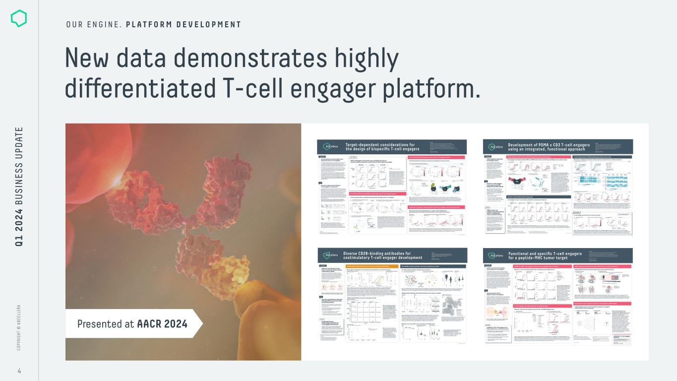 C O PY RI G H T © A B C EL LE RA C O PY RI G H T © A B C EL LE RA 4 New data demonstrates highly differentiated T-cell engager platform. O U R E N G I N E . P L A T F O R M D E V E L O P M E N T Q 1 2 0 2 4 B U S IN ES S U PD AT E Presented at AACR 2024