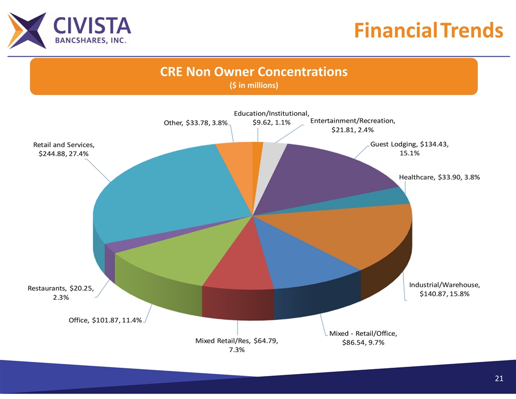 FinancialTrends Loan Mix ($ in millions) Ø Total Gross Loans: $2.9billion 20