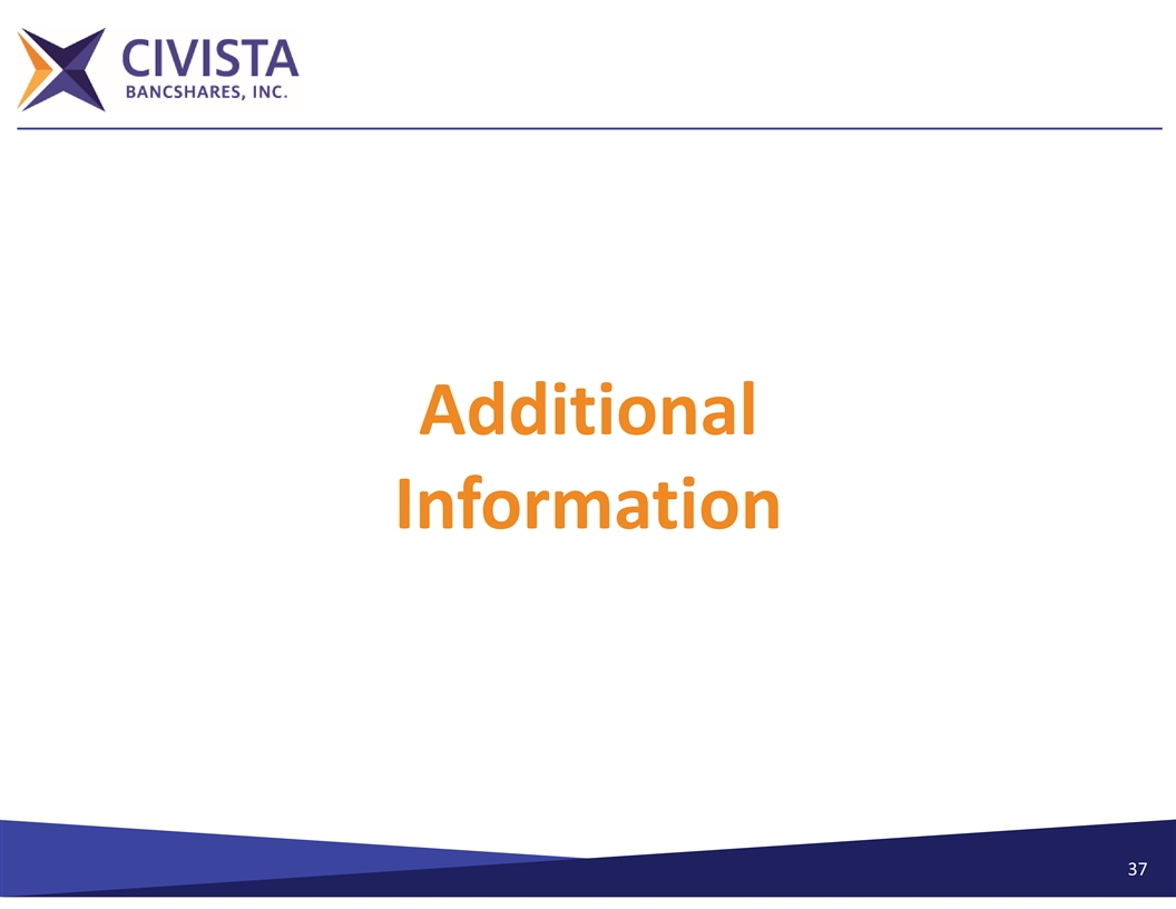 Why Civista? Compelling Investment Opportunity Ø Community bank franchise poised for acquisitions and strong core deposit franchise Ø Strong capital position Ø Strong credit culture and asset quality Ø Experienced acquirer Ø Continued strong NIM Ø Experienced management team with an average of 31 years in banking Ø Strategically positioned in attractive Ohio lending markets funded by low‐cost deposits with operations in the 5 largest Ohio MSAs Ø Demonstrated strong profitability from 2019 to Q1 2024 – Net Income CAGR: 2.2% – TBV / Share CAGR:0.4% – EPS CAGR: 3.5% 36