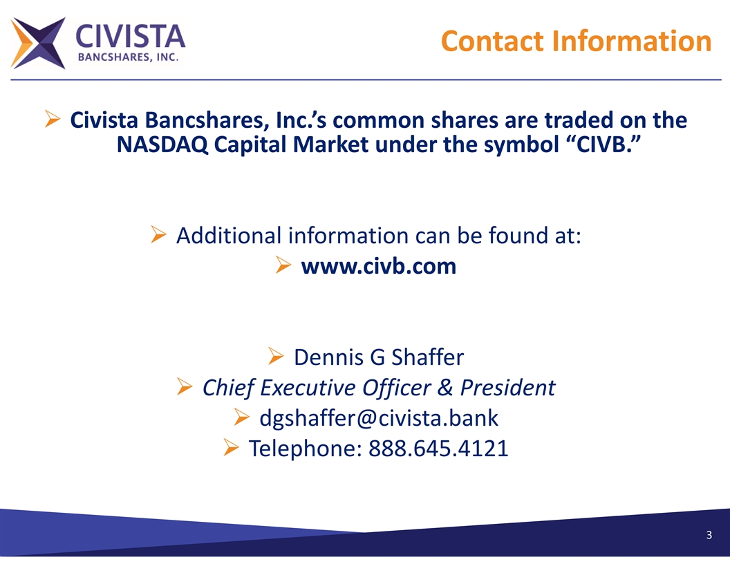Exhibit 99.1 Investor Presentation First Quarter 2024 Dennis G. Shaffer ‐Chief Executive Officer & President Richard J. Dutton ‐Senior Vice President, Chief Operating Officer NASDAQ: CIVB 1