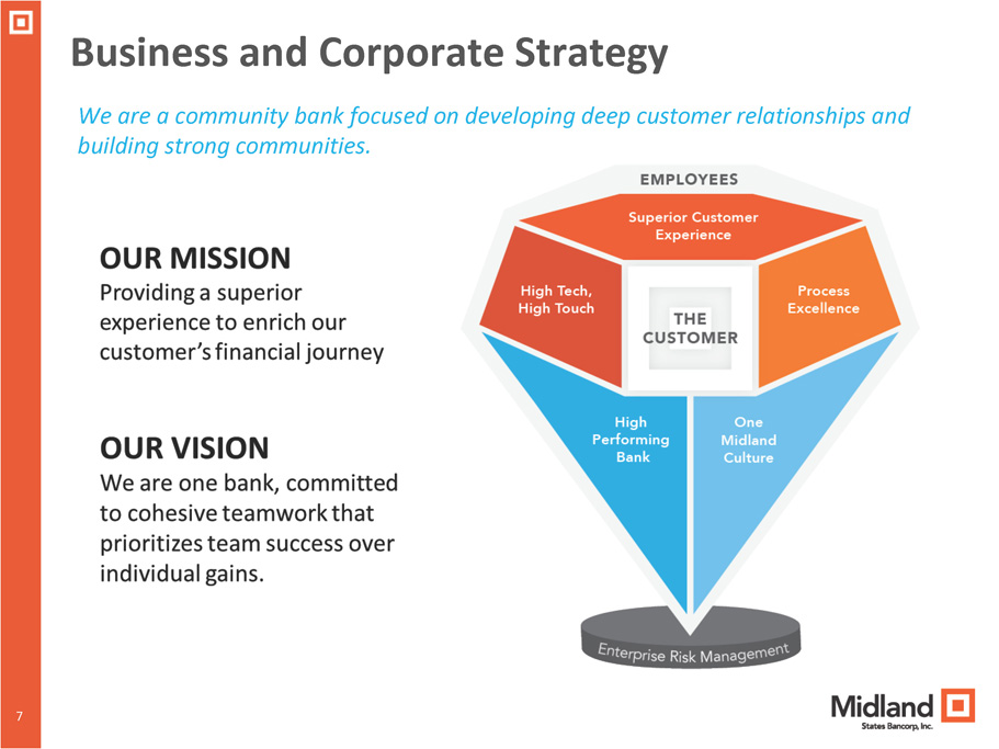 7 Business and Corporate Strategy We are a community bank focused on developing deep customer relationships and building strong communities. 7