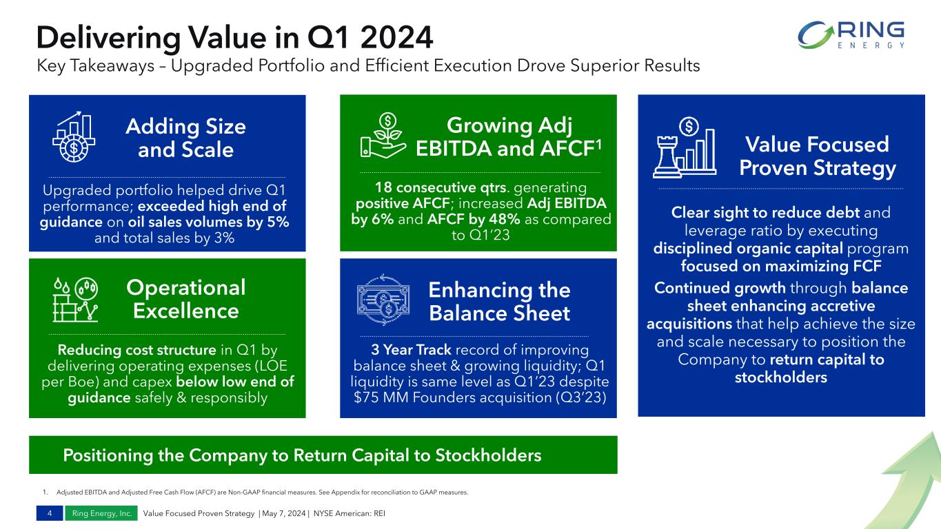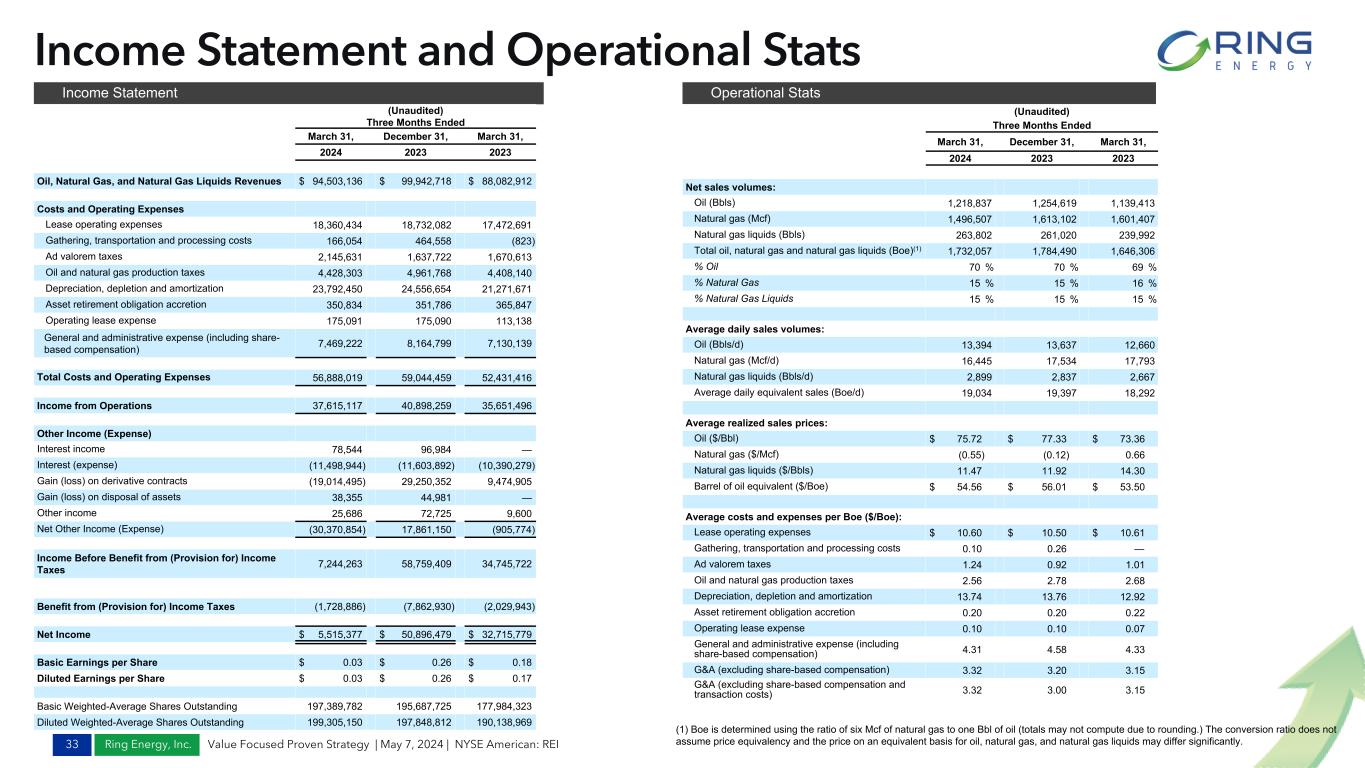 NYSE American: REIwww.ringenergy.com May 7, 2024 VALUE FOCUSED PROVEN STRATEGY Q1 EARNINGS REVIEW