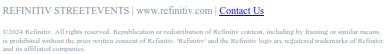 THE INFORMATION CONTAINED IN EVENT BRIEFS REFLECTS REFINITIV'S SUBJECTIVE CONDENSED PARAPHRASE OF THE APPLICABLE COMPANY'S CONFERENCE CALL AND THERE MAY BE MATERIAL ERRORS, OMISSIONS, OR INACCURACIES IN THE REPORTING OF THE SUBSTANCE OF THE CONFERENCE CALLS. IN NO WAY DOES REFINITIV OR THE APPLICABLE COMPANY ASSUME ANY RESPONSIBILITY FOR ANY INVESTMENT OR OTHER DECISIONS MADE BASED UPON THE INFORMATION PROVIDED ON THIS WEB SITE OR IN ANY EVENT BRIEF. USERS ARE ADVISED TO REVIEW THE APPLICABLE COMPANY'S CONFERENCE CALL ITSELF AND THE APPLICABLE COMPANY'S SEC FILINGS BEFORE MAKING ANY INVESTMENT OR OTHER DECISIONS.