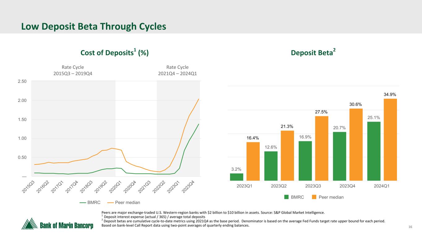 16 Text 95,96,96 Light Gray 232, 232, 232 Black 0, 0, 0 White 255, 255, 255 Accent 1 7,89,52 Accent 2 248,153,40 Accent 3 254,217,129 Accent 4 52,153,70 Accent 5 5,39,67 Accent 6 171,184,195 Peers are major exchange-traded U.S. Western-region banks with $2 billion to $10 billion in assets. Source: S&P Global Market Intelligence. 1 Deposit interest expense (actual / 365) / average total deposits 2 Deposit betas are cumulative cycle-to-date metrics using 2021Q4 as the base period. Denominator is based on the average Fed Funds target rate upper bound for each period. Based on bank-level Call Report data using two-point averages of quarterly ending balances. Low Deposit Beta Through Cycles Cost of Deposits1 (%) Deposit Beta2 Rate Cycle 2021Q4 – 2024Q1 Rate Cycle 2015Q3 – 2019Q4 BMRC Peer median 20 15 Q3 20 16 Q2 20 17 Q1 20 17 Q4 20 18 Q3 20 19 Q2 20 20 Q1 20 20 Q4 20 21 Q3 20 22 Q2 20 23 Q1 20 23 Q4 — 0.50 1.00 1.50 2.00 2.50 3.2% 12.6% 16.9% 20.7% 25.1% 16.4% 21.3% 27.5% 30.6% 34.9% BMRC Peer median 2023Q1 2023Q2 2023Q3 2023Q4 2024Q1