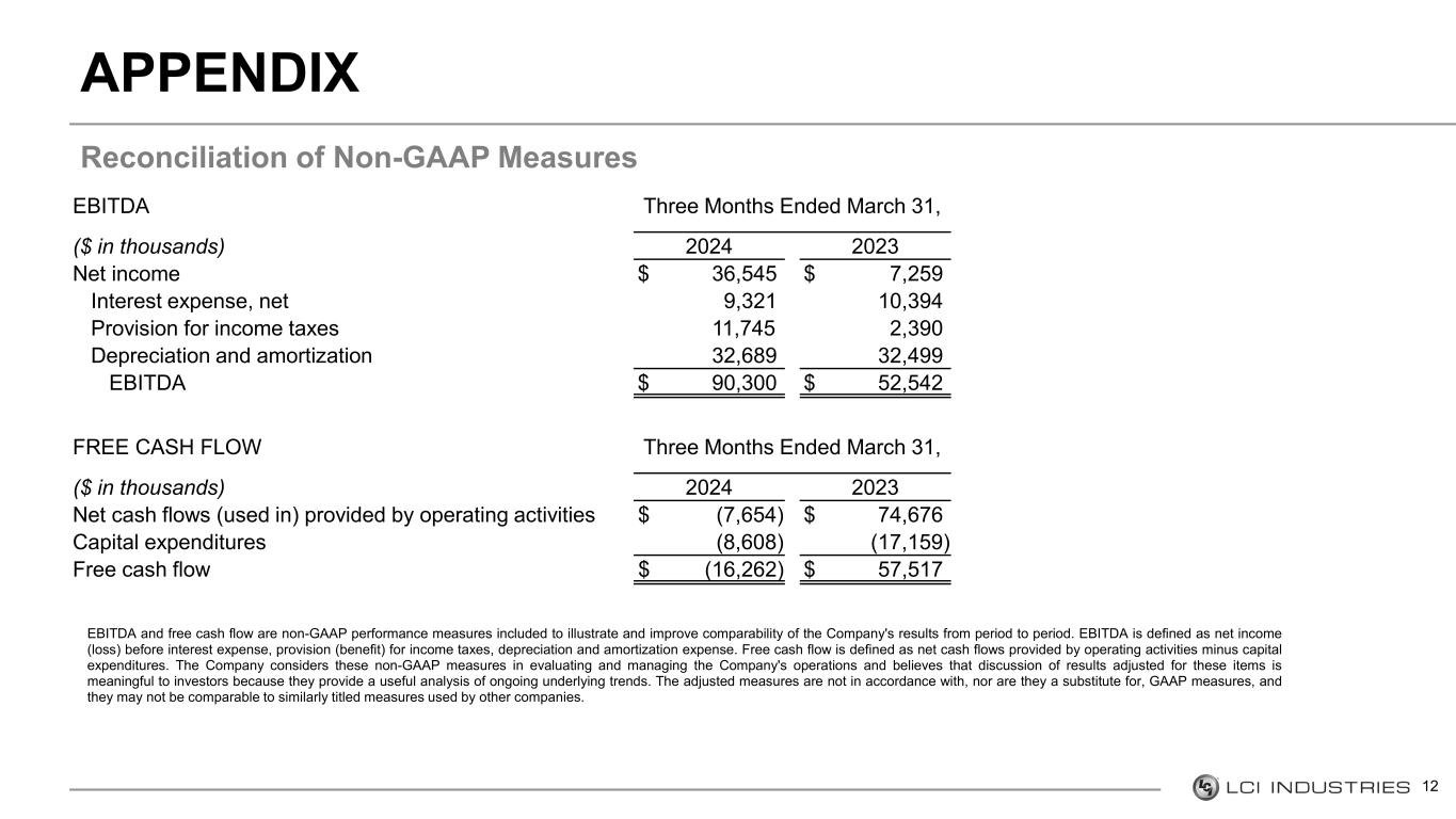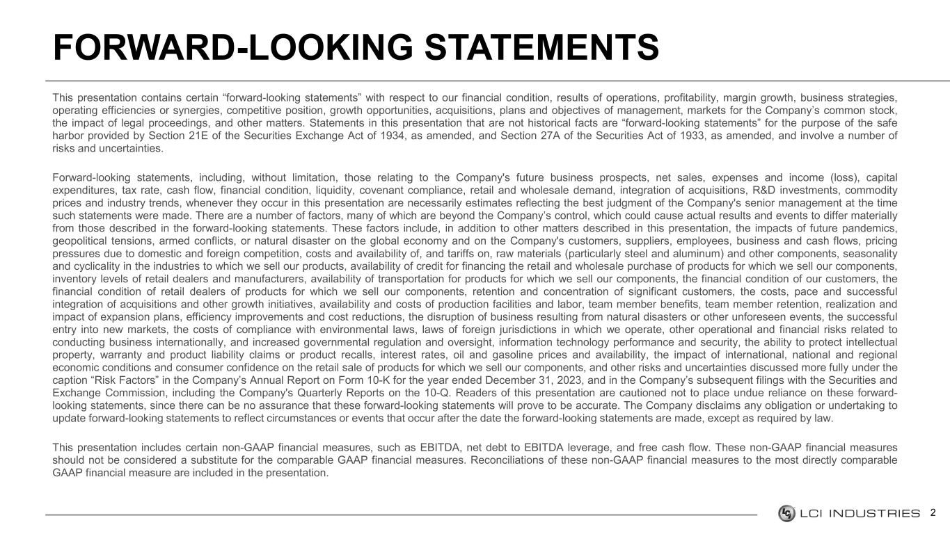 LCI Industries Q1 2024 Earnings Conference Call May 8, 2024 1