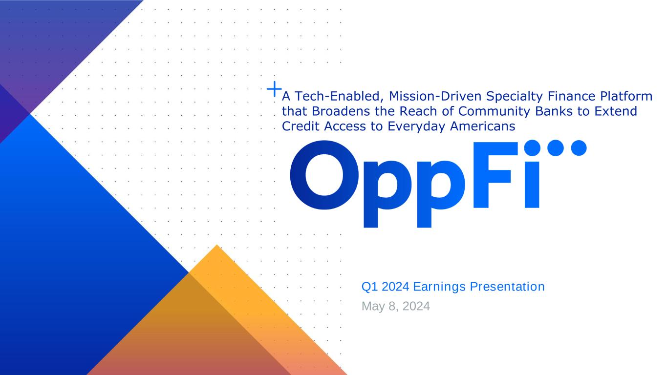 Q1 2024 Earnings Presentation May 8, 2024 A Tech-Enabled, Mission-Driven Specialty Finance Platform that Broadens the Reach of Community Banks to Extend Credit Access to Everyday Americans
