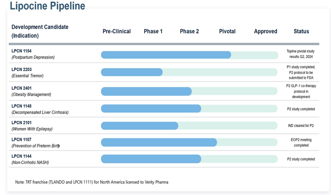 We have focused a significant portion of our efforts on developing TLANDO and more recently on LPCN 1154, LPCN 1148, and LPCN 1144. We have funded our operations to date through sales of our equity securities, debt and payments received under our license and collaboration arrangements. We have incurred losses in most years since our inception. As of March 31, 2024, we had an accumulated deficit of $196.3 million. Substantially all of our operating losses resulted from costs incurred in connection with our research and development programs and from general and administrative costs associated with our operations. These losses, combined with expected future losses, have had and will continue to have an adverse effect on our stockholders’ equity and working capital. We expect to continue to incur significant research and development expenses in connection with clinical trials associated with LPCN 1154, and potentially with LPCN 2101, LPCN 2203, LPCN 2401. LPCN 1148, LPCN 1144 and LPCN 1107, if further clinical trials are initiated. As a result, we expect to continue to incur significant operating losses for the foreseeable future as we evaluate further clinical development of LPCN 1154, LPCN 2101, LPCN 2203, LPCN 2401 and possibly LPCN 1148, LPCN 1144, and LPCN 1107, in addition to our other programs and continued research efforts. Because of the numerous risks and uncertainties associated with developing pharmaceutical products, we are unable to predict the extent of any future losses or when we will become profitable, if at all.