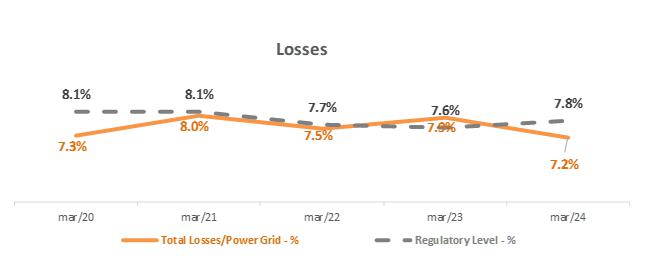 | NOTE: In the calculation of the distributor's total losses, energy losses inherent to the electric power system (technical losses), commercial losses (mainly due to fraud, theft) and differences related to the shift in the billing schedule and the effects of the portion of mini and micro generation distributed in the Company's network | ||||||