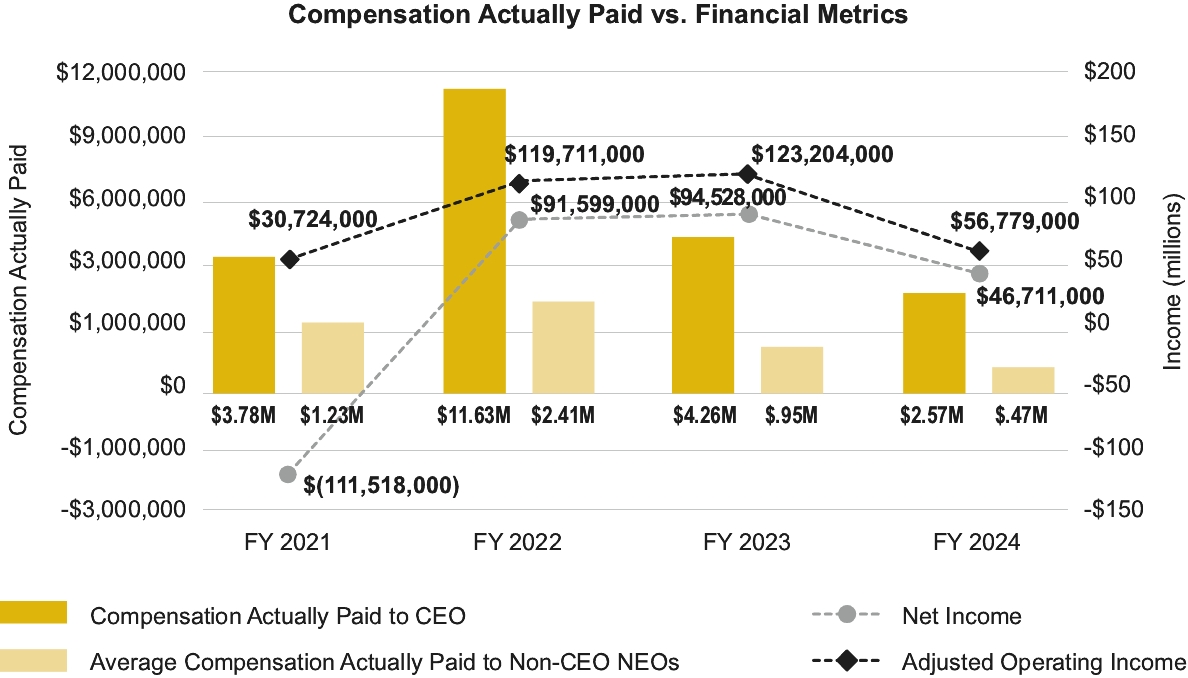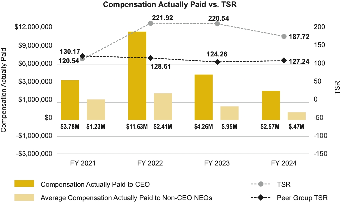 (3) | The dollar amounts reported in column (d) represent the average of the amounts reported for the non-CEO NEOs as a group for each corresponding year in the “Total” column of the Summary Compensation Table. Ms. DeMarsilis, Mr. Soltani, Mr. Sussis and former Senior Vice President Human Resources Vivian D’Elia were our only non-CEO NEOs for fiscal years 2022 and 2023. Ms. DeMarsilis, Mr. Soltani, Mr. Sussis and Ms. Kennedy were our only non-CEO NEOs for fiscal year 2024. |