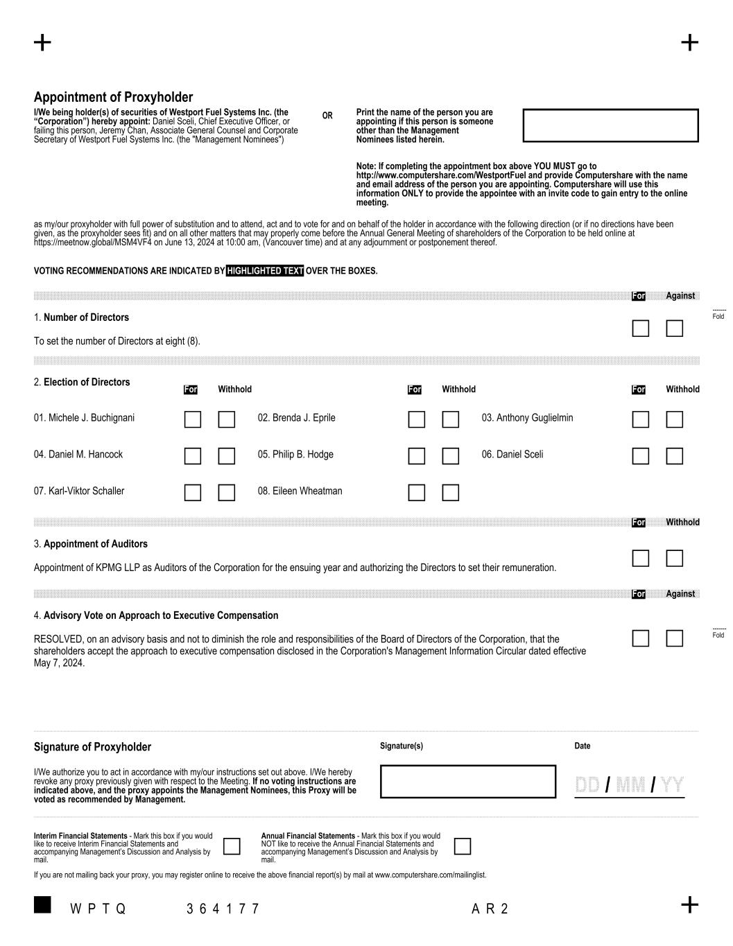 | | WESTPORT FUEL SYSTEMS INC. | |
