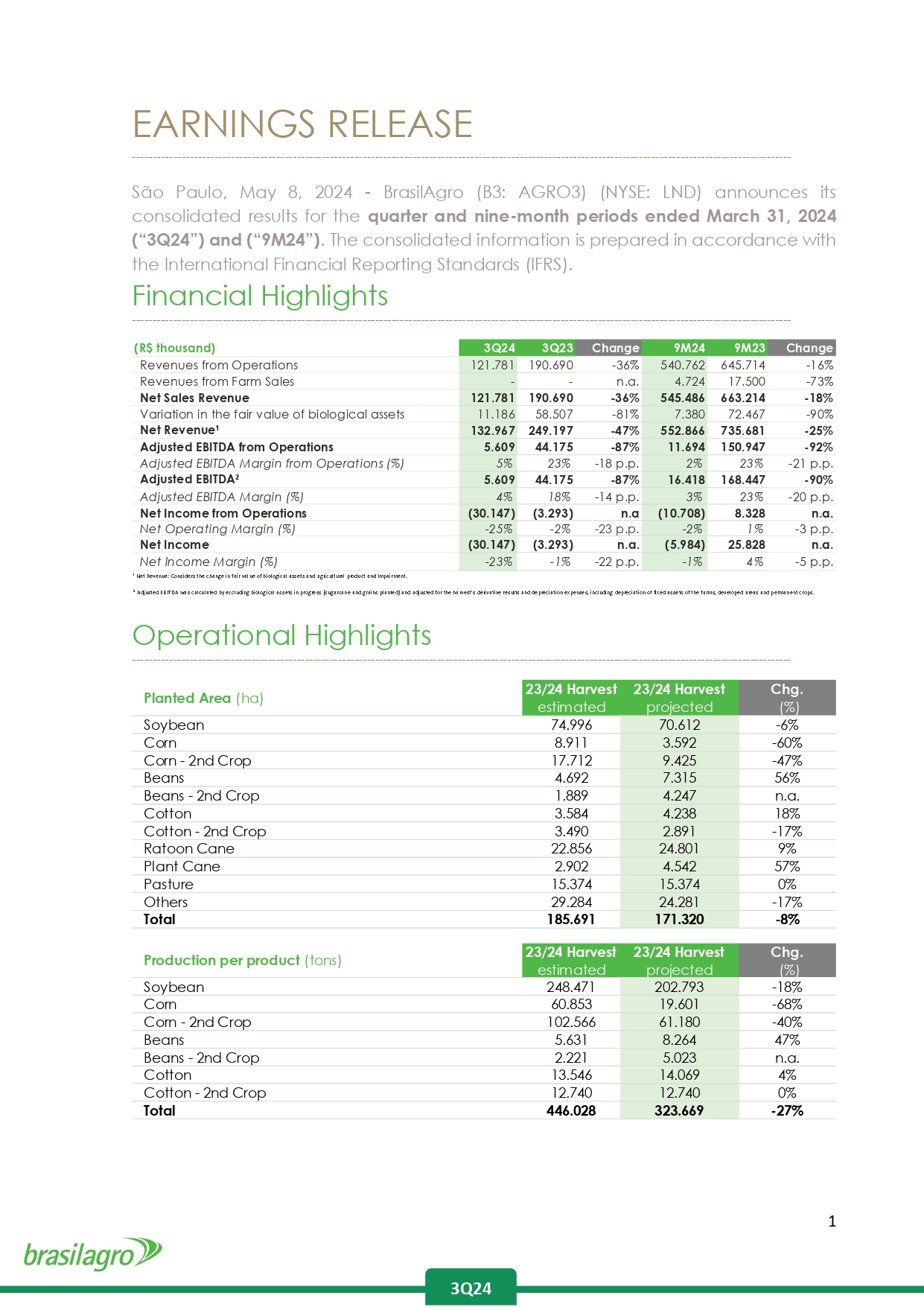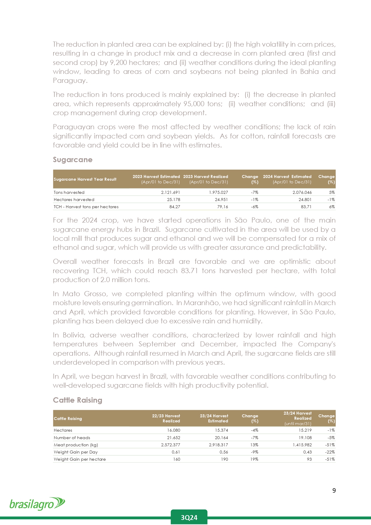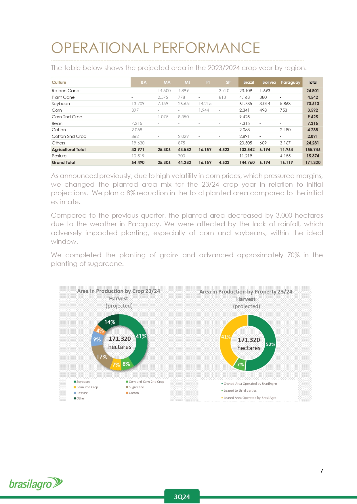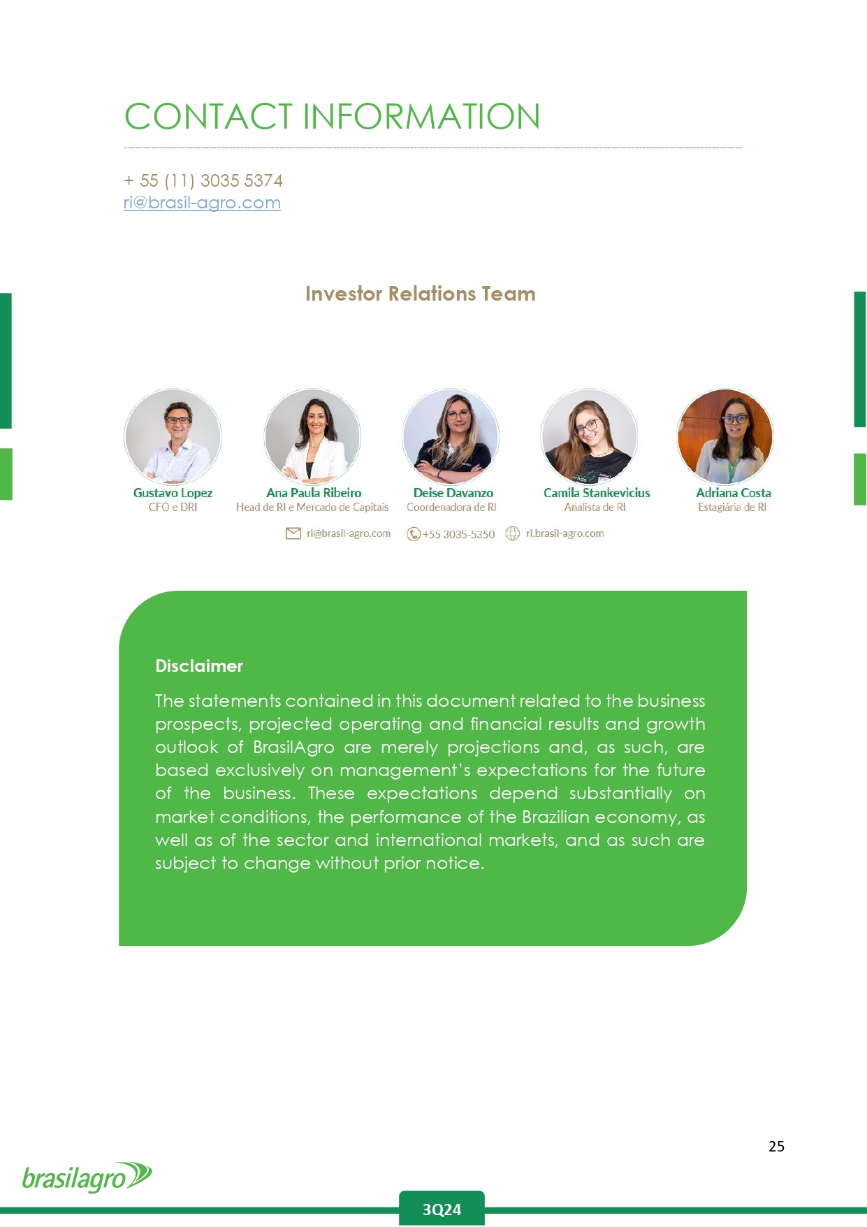 Tel. +55 11 3035 5350, Fax +55 11 3035 5366, ri@brasil-agro.com