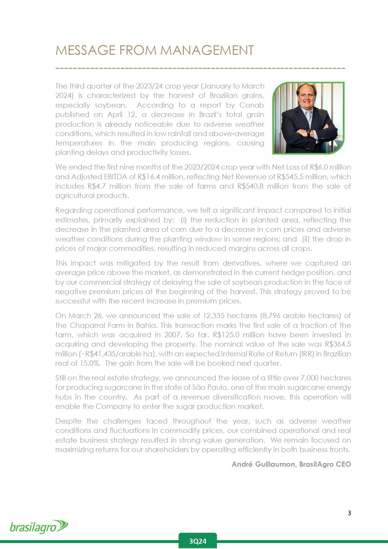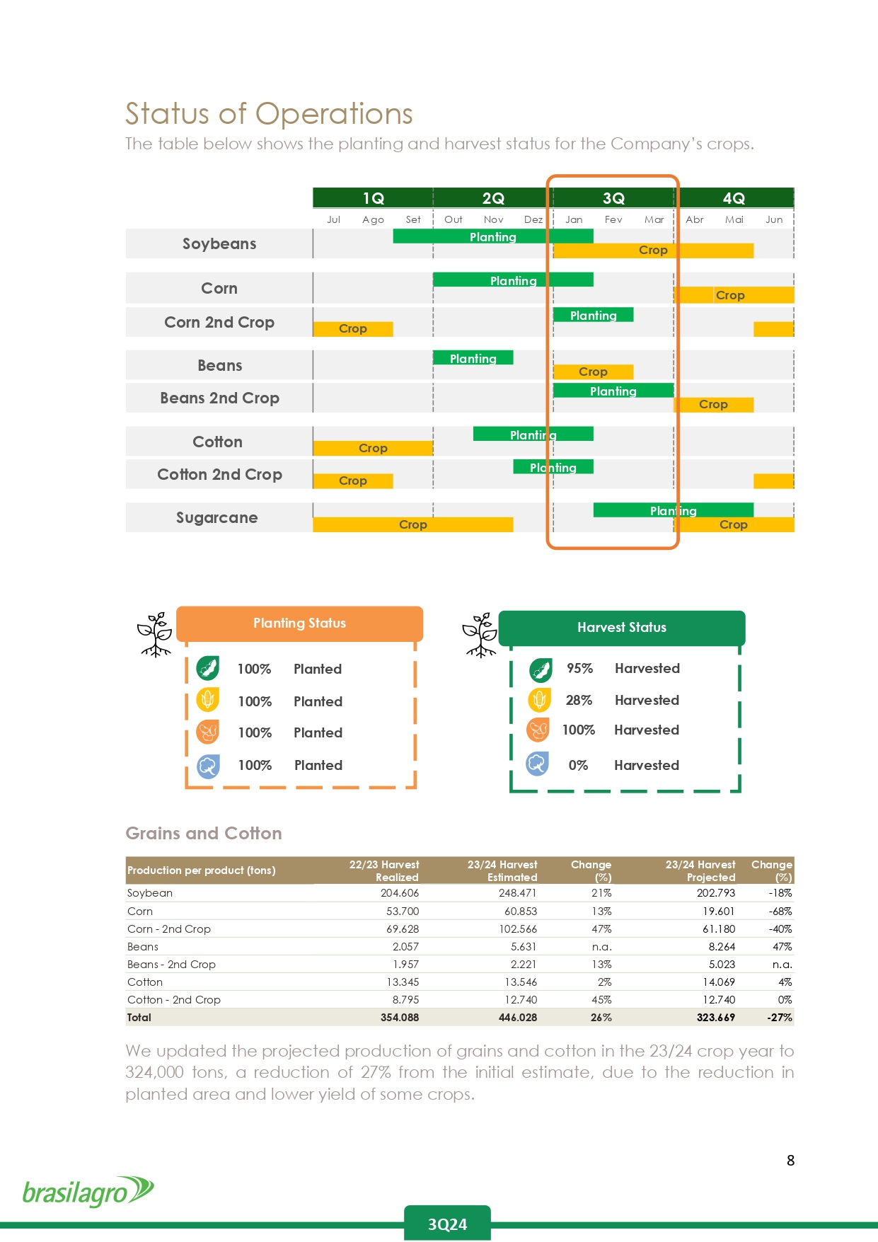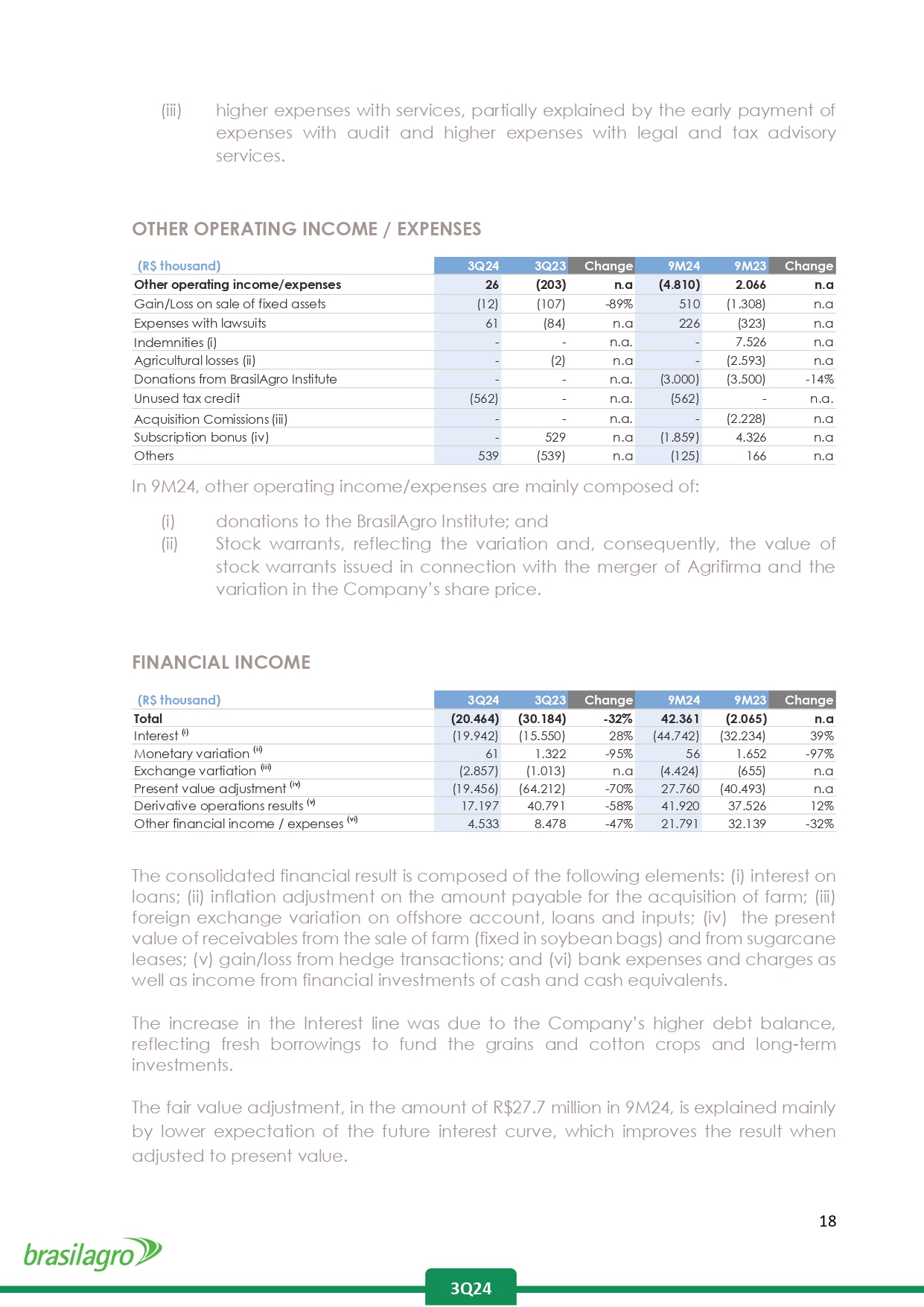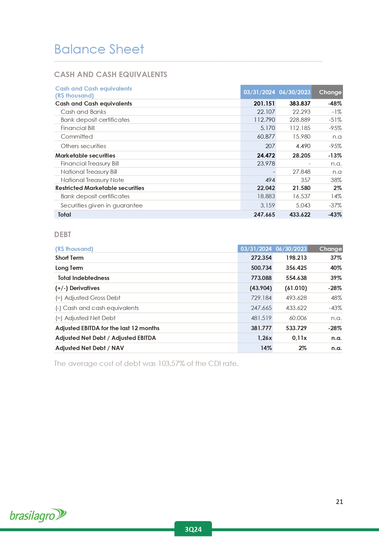 Tel. +55 11 3035 5350, Fax +55 11 3035 5366, ri@brasil-agro.com