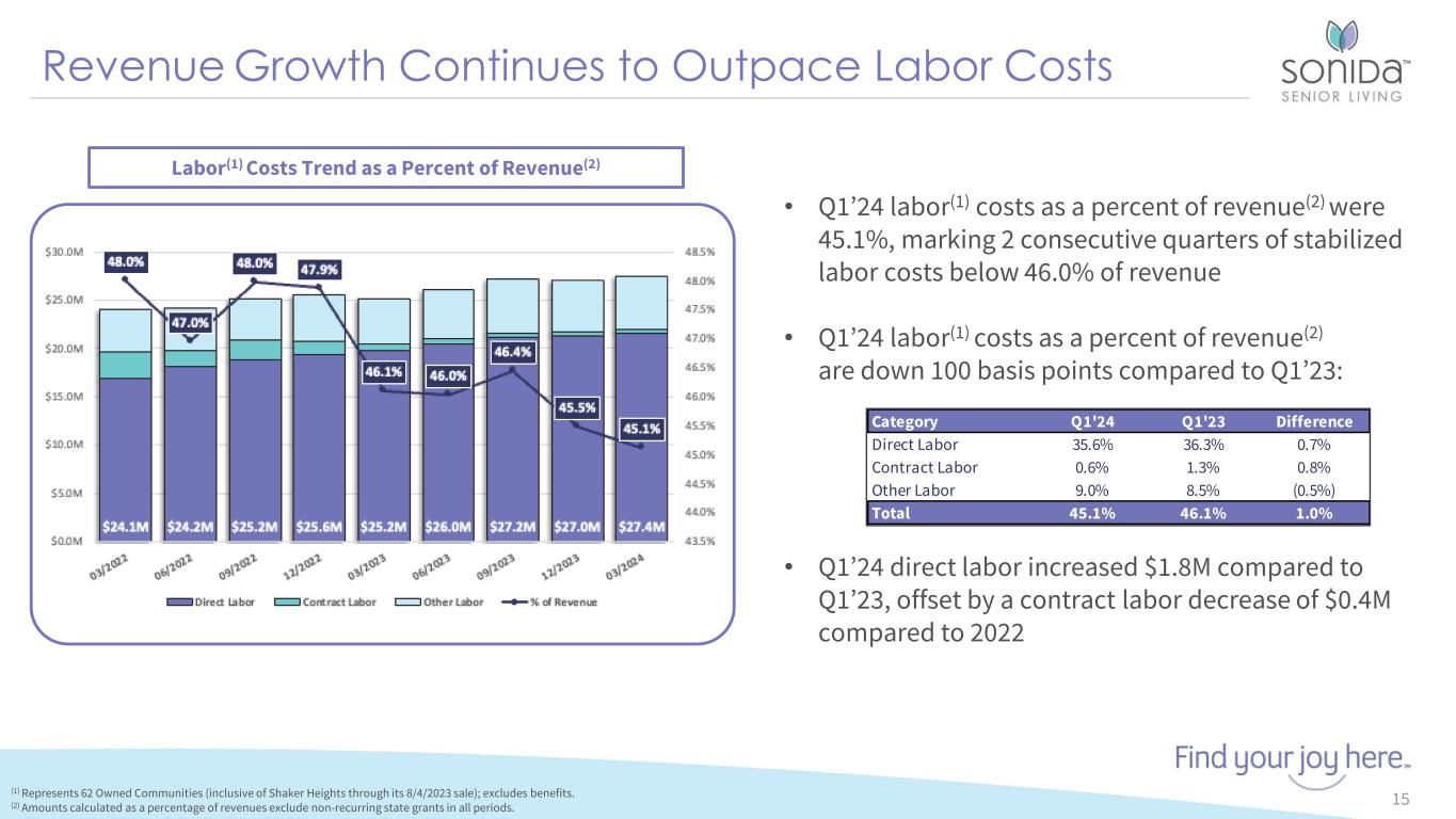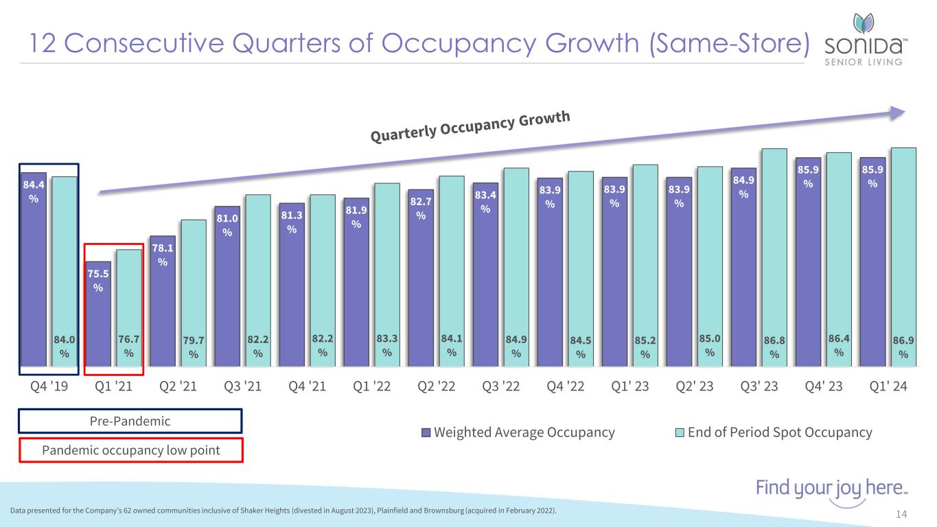 “We achieved strong across-the-board results during the first quarter of 2024, executing on our key financial and operational priorities with year-over-year occupancy, revenue and community net operating income all demonstrating continued growth. With our recent balance sheet and liquidity advancements, Sonida has meaningfully positioned itself for strategic expansion and continued momentum, with an eye on shareholder value creation into the second quarter and beyond. I am truly proud of our team, as our inherent focus on serving seniors with our signature programs and services is clearly being reflected in the strength of our performance,” said Brandon Ribar, President and CEO.