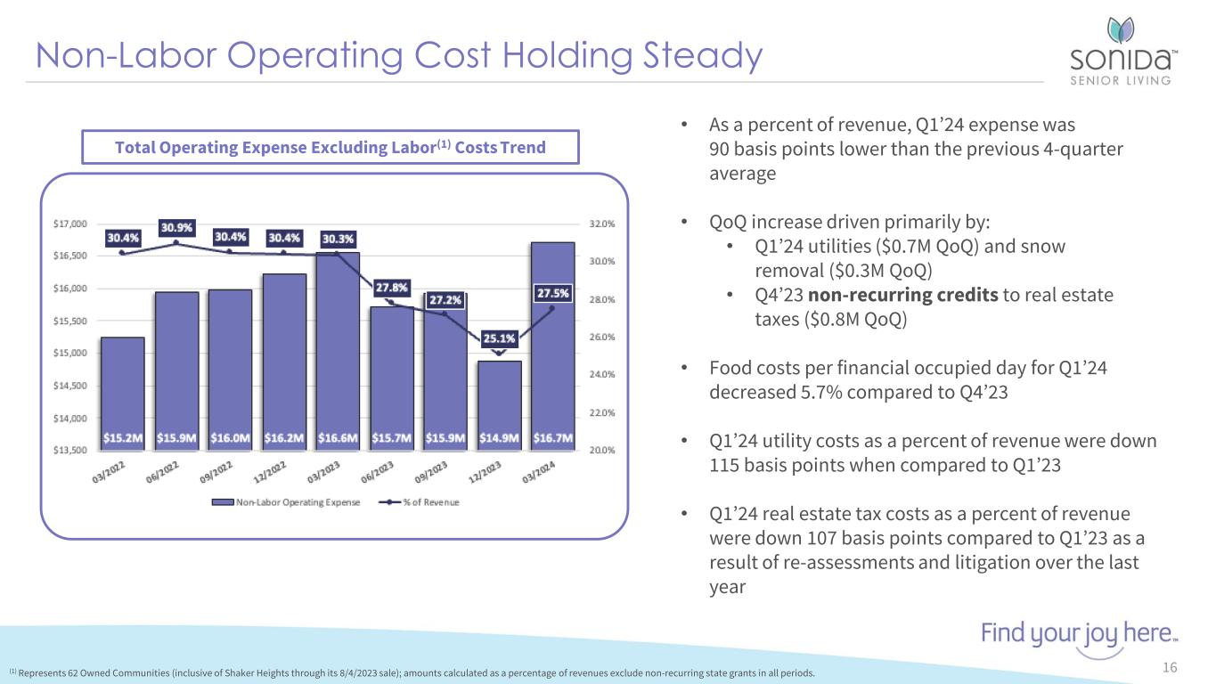 ▪Community Net Operating Income, a non-GAAP measure, increased $1.5 million to $14.9 million. Adjusted Community Net Operating Income, a non-GAAP measure, which excludes $2.0 million of state grant revenue received in Q1 2023 (none received in Q1 2024) was $14.9 million and $11.4 million for Q1 2024 and Q1 2023, respectively.