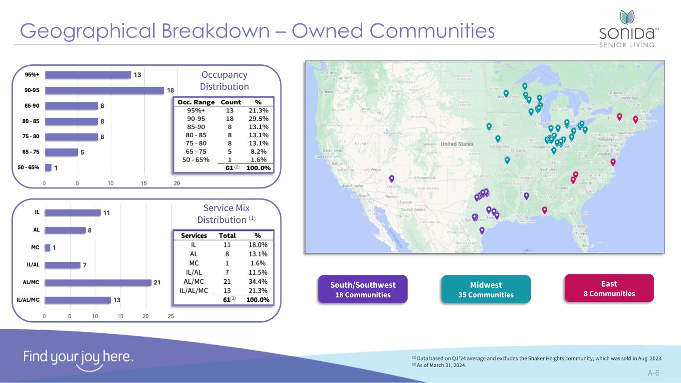 Financial Overview – Owned Communities A-1 Note: Dollars in 000s. Numbers may vary due to rounding. Amounts derived from 2023 10-K as filed; nominal adjustments were made to conform 2022 actuals to 2023 presentation in the 2023 Form 10-K. (1) Resident Revenue, Community NOI, Community NOI Margin %, Net Income (loss), Adjusted EBITDA, REVPOR and REVPAR include the impact of non-recurring state grants earned and received in the period, as follows: Q1 2022: $0.7M, Q2 2022: $0.5M, Q1 2023: $2.0M, Q2 2023: $0.4M and Q3 2023: $0.5M. (2) Data presented for the Company’s 62 owned communities inclusive of Shaker Heights (divested in August 2023), Plainfield and Brownsburg (acquired in February 2022).