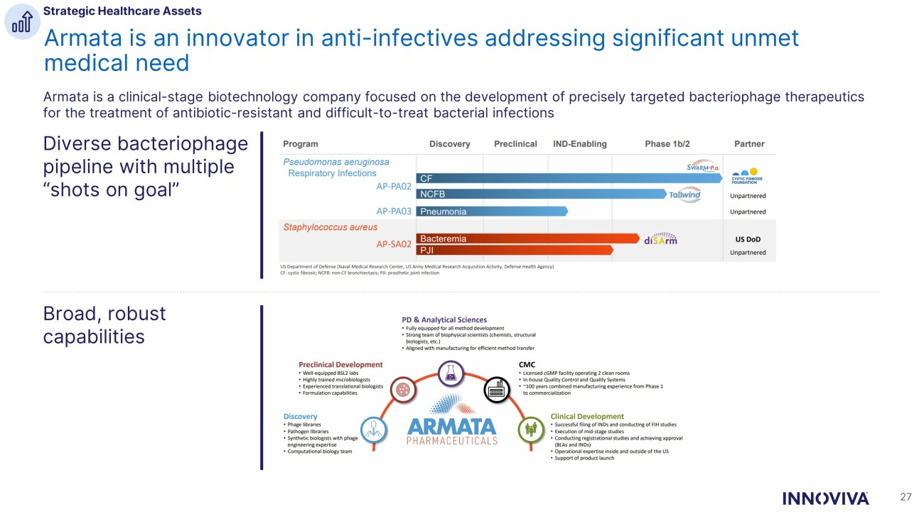 Armata is an innovator in anti - infectives addressing significant unmet medical need Armata is a clinical - stage biotechnology company focused on the development of precisely targeted bacteriophage therapeutics for the treatment of antibiotic - resistant and difficult - to - treat bacterial infections 27 Diverse bacteriophage pipeline with multiple “shots on goal” Broad, robust capabilities Strategic Healthcare Assets