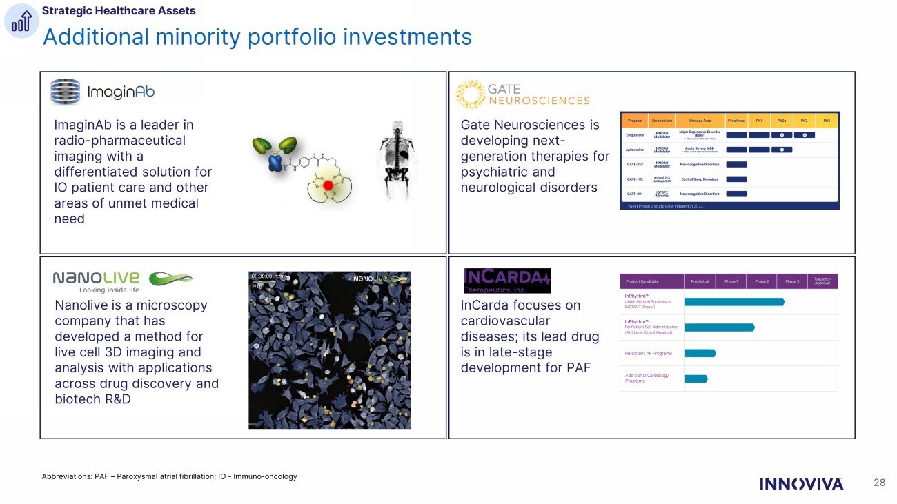 Additional minority portfolio investments 28 Abbreviations: PAF – Paroxysmal atrial fibrillation; IO - Immuno - oncology InCarda focuses on cardiovascular diseases; its lead drug is in late - stage development for PAF ImaginAb is a leader in radio - pharmaceutical imaging with a differentiated solution for IO patient care and other areas of unmet medical need Gate Neurosciences is developing next - generation therapies for psychiatric and neurological disorders Nanolive is a microscopy company that has developed a method for live cell 3D imaging and analysis with applications across drug discovery and biotech R&D Strategic Healthcare Assets