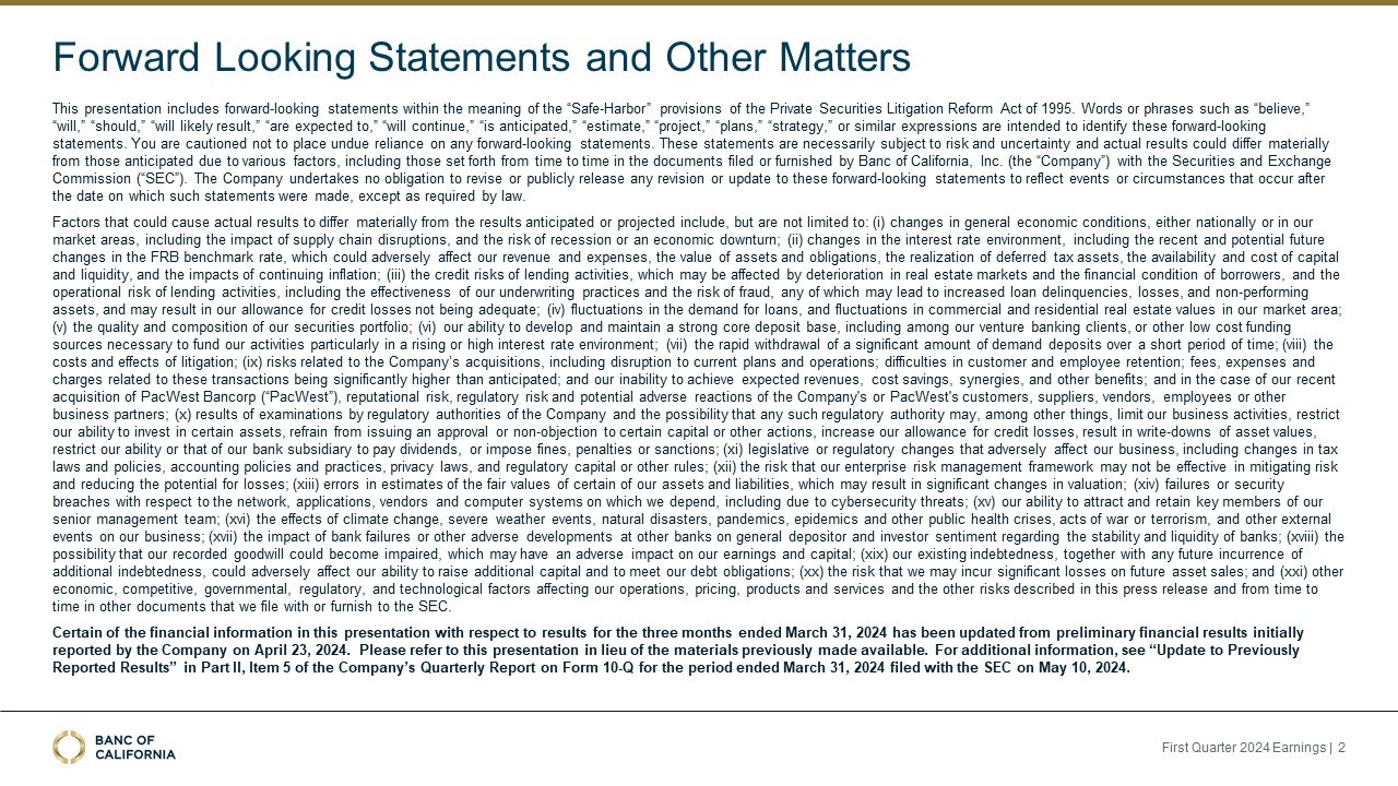 documents that we file with or furnish to the SEC. Certain of the financial information in this presentation with respect to results for the three months ended March 31, 2024 has been updated from preliminary financial results initially reported