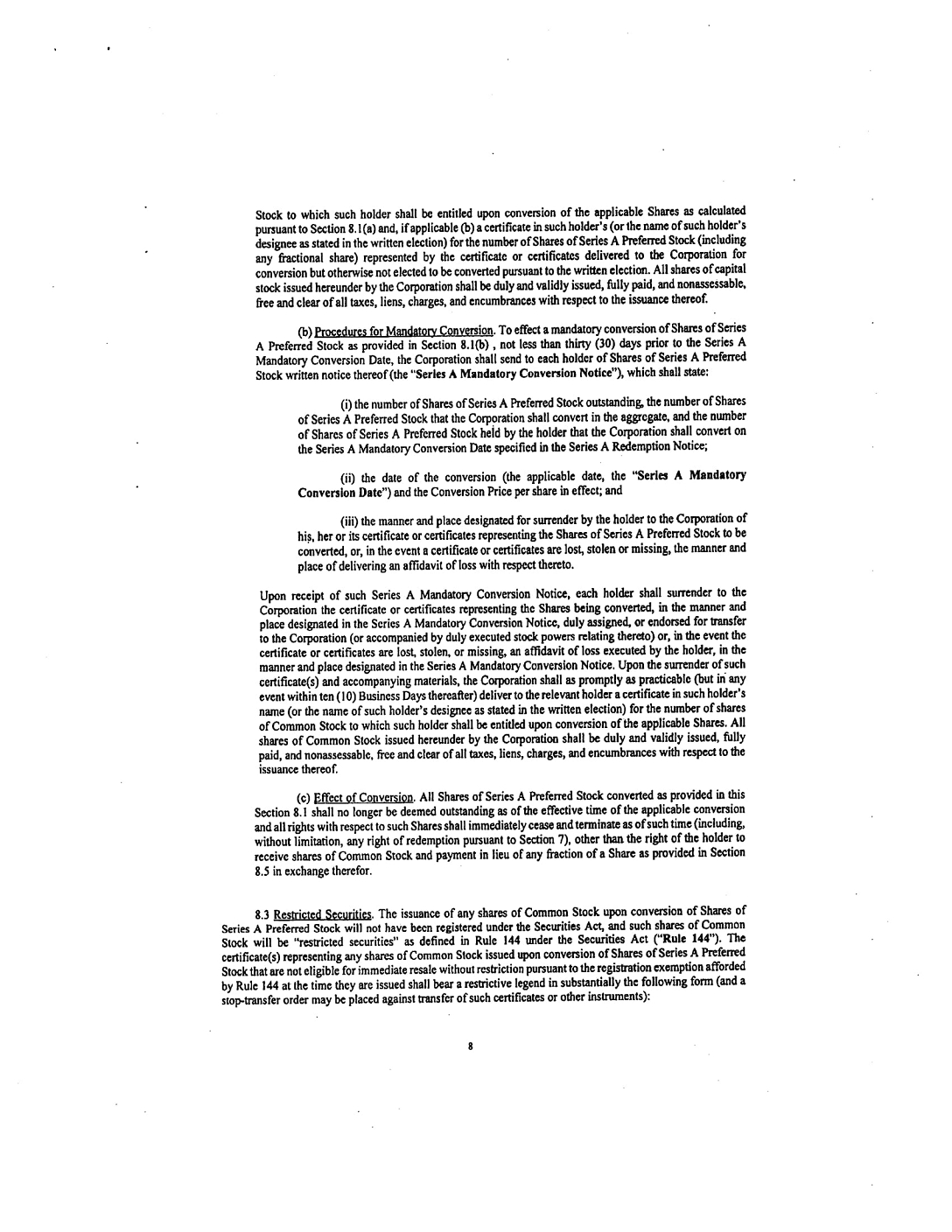 “THE SECURITIES REPRESENTED BY THIS CERTIFICATE HAVE NOT BEEN REGISTERED UNDER THE SECURITIES ACT OF 1933, AS AMENDED (THE “ACT”), OR THE SECURITIES LAWS OF ANY STATE. THE SECURITIES MAY NOT BE TRANSFERRED EXCEPT PURSUANT TO AN EFFECTIVE REGISTRATION STATEMENT UNDER SUCH ACT AND APPLICABLE STATE SECURITIES LAWS OR PURSUANT TO AN APPLICABLE EXEMPTION FROM THE REGISTRATION REQUIREMENTS OF SUCH ACT AND SUCH LAWS.”