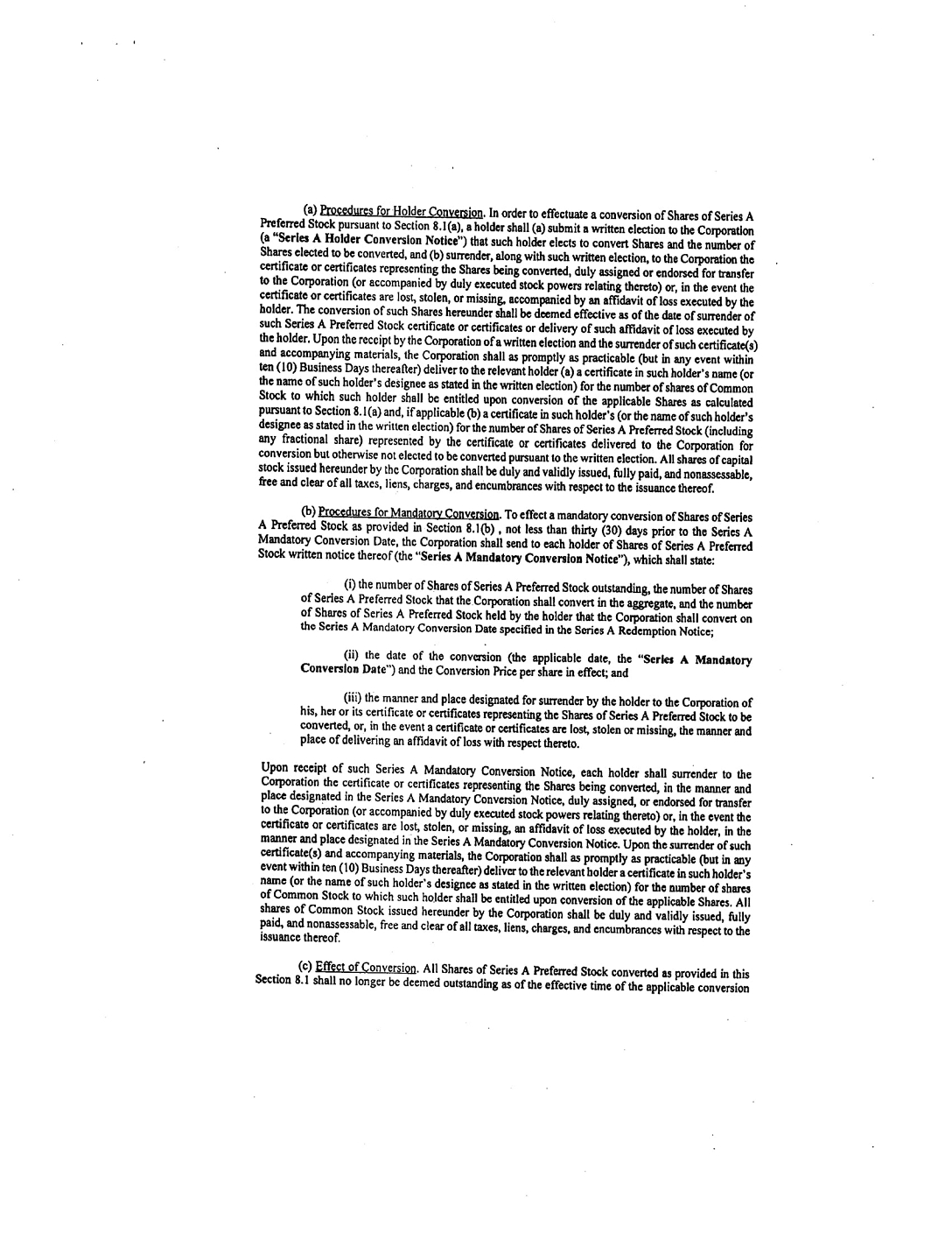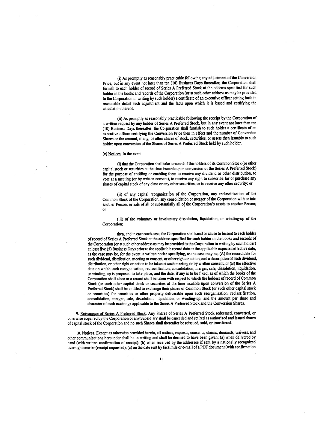 4.1 ADDRESSES AND NOTICES. Any and all notices or other communications or deliveries required or permitted to be provided hereunder shall be in writing and shall be deemed given and effective on the earliest of (a) the date of transmission, if such notice or communication is delivered via e-mail transmission prior to 5:00 P.M., New York City time, on a trading day, (b) the next trading day after the date of transmission, if such notice or communication is delivered via e-mail transmission on a day that is not a trading day or later than 5:00 P.M., New York City time, on any trading day, (c) the trading day following the date of mailing, if sent by U.S. nationally recognized overnight courier service with next day delivery specified, or (d) upon actual receipt by the party to whom such notice is required to be given. The address and e-mail address for such notices and communications shall be as follows:
