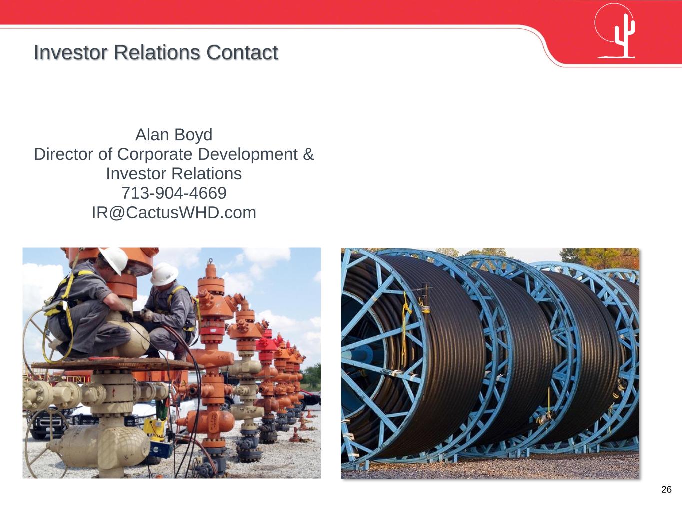 26 Alan Boyd Director of Corporate Development & Investor Relations 713-904-4669 IR@CactusWHD.com Investor Relations Contact