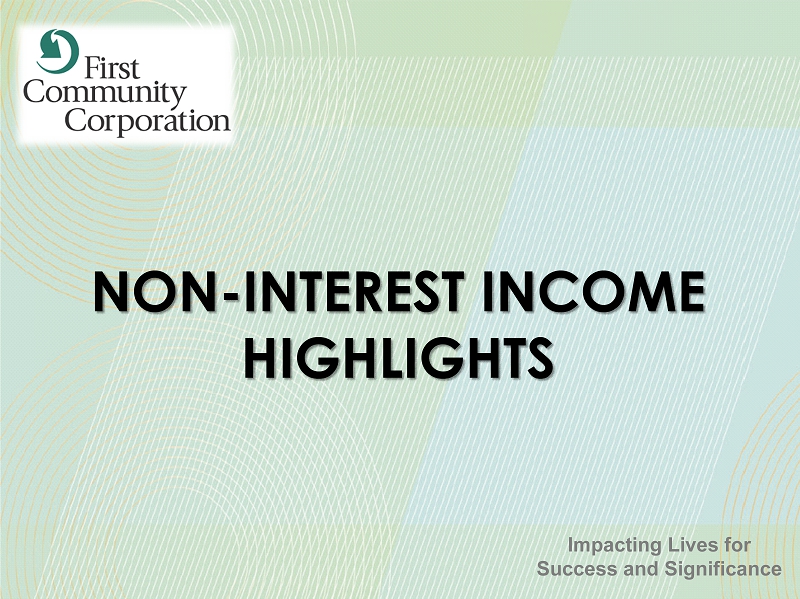 NON - INTEREST INCOME HIGHLIGHTS Impacting Lives for Success and Significance