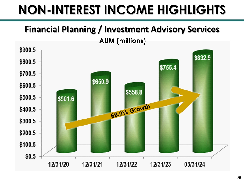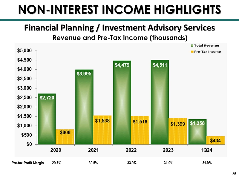 Financial Planning / Investment Advisory Services AUM (millions) 35 NON - INTEREST INCOME HIGHLIGHTS