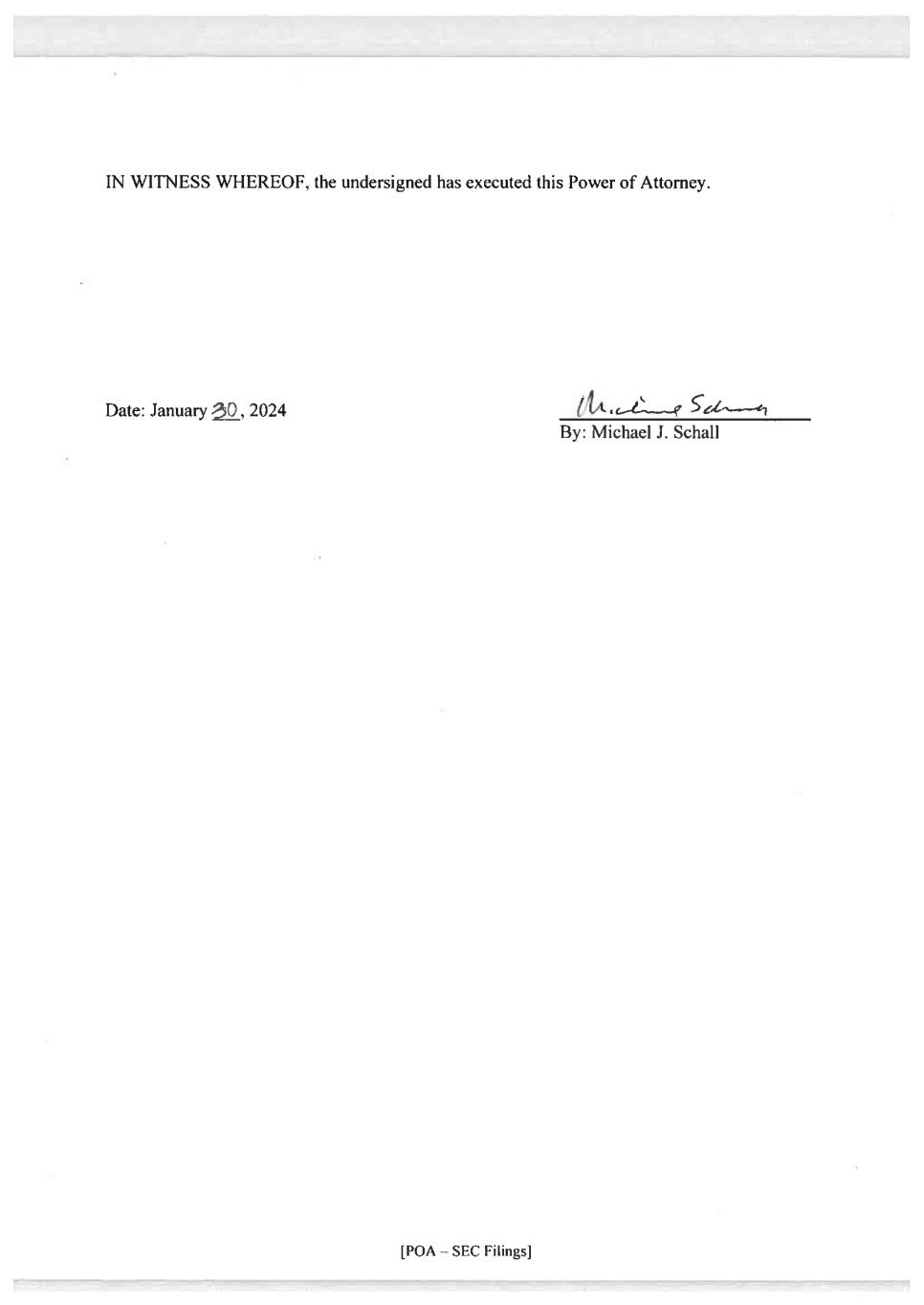 Michael J. Schall, by Jason Parsont, his Attorney-in-fact