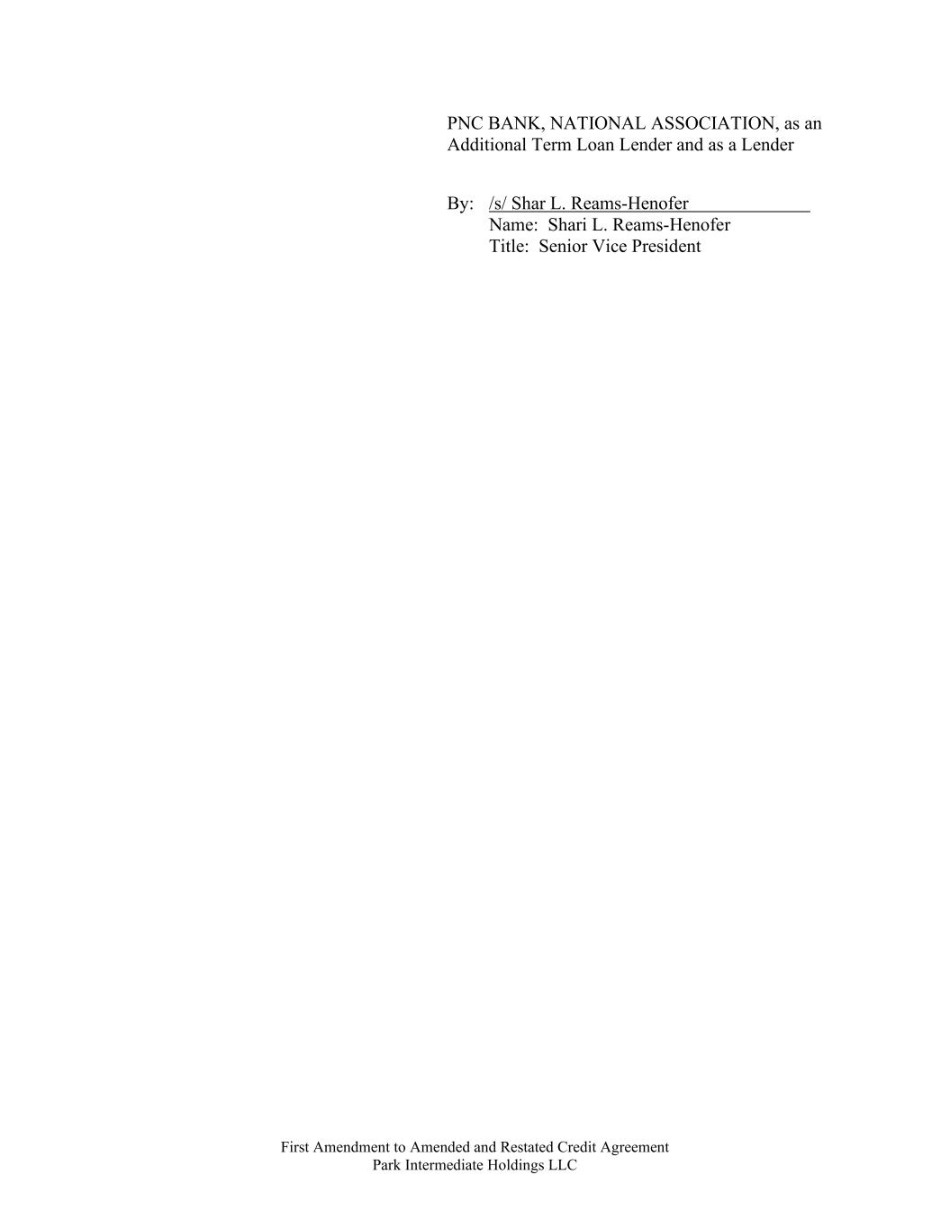 First Amendment to Amended and Restated Credit Agreement Park Intermediate Holdings LLC PNC BANK, NATIONAL ASSOCIATION, as an Additional Term Loan Lender and as a Lender By: /s/ Shar L. Reams-Henofer Name: Shari L. Reams-Henofer Title: Senior Vice President