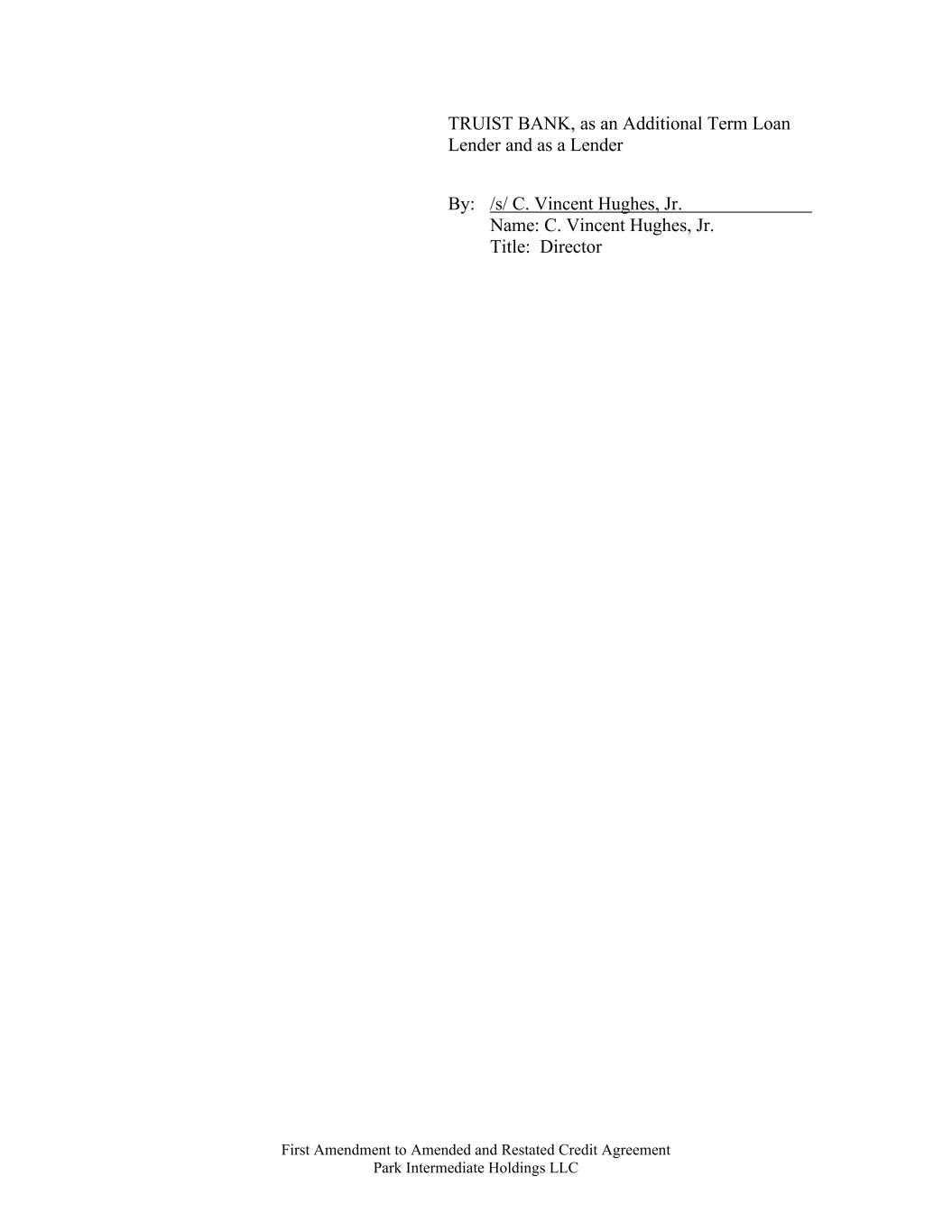 First Amendment to Amended and Restated Credit Agreement Park Intermediate Holdings LLC TRUIST BANK, as an Additional Term Loan Lender and as a Lender By: /s/ C. Vincent Hughes, Jr. Name: C. Vincent Hughes, Jr. Title: Director