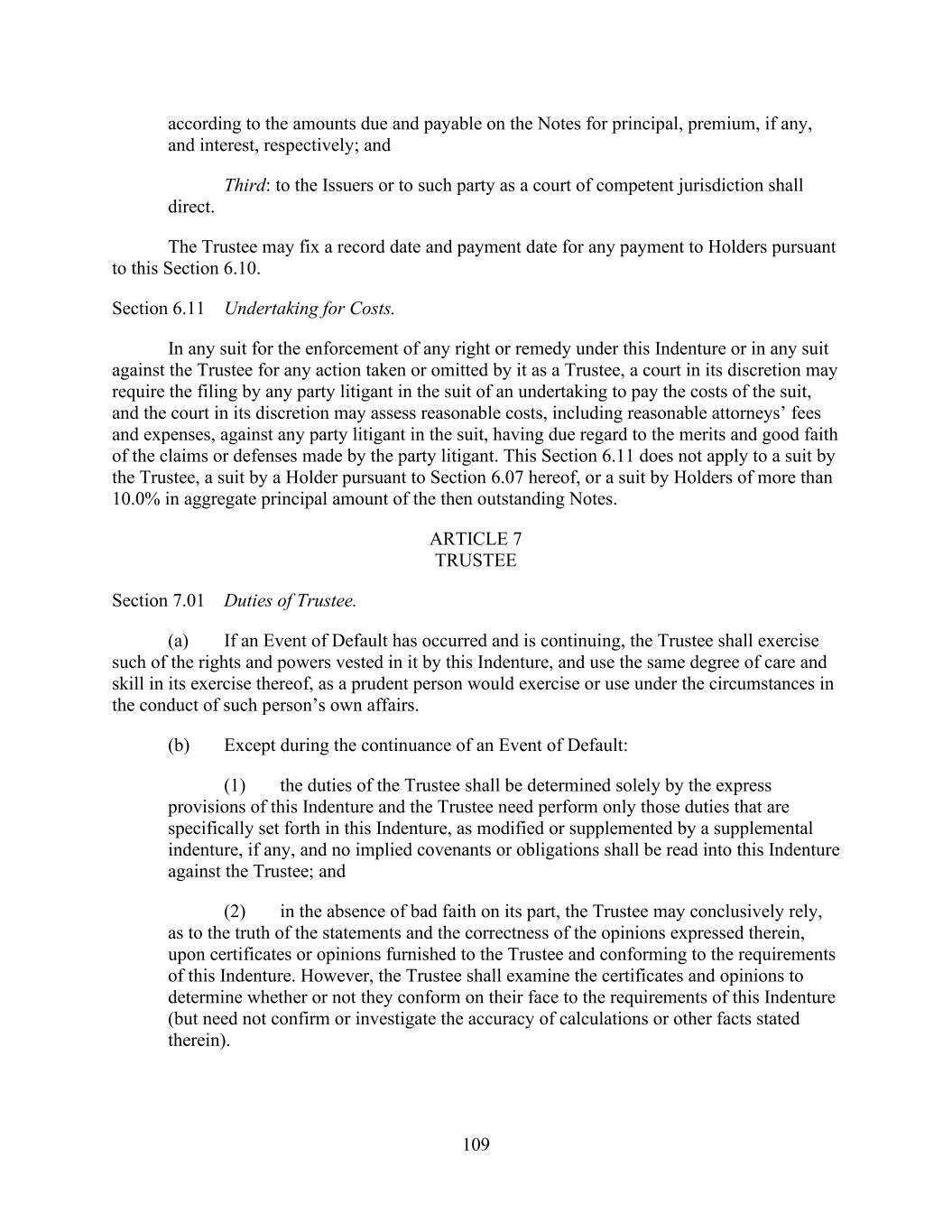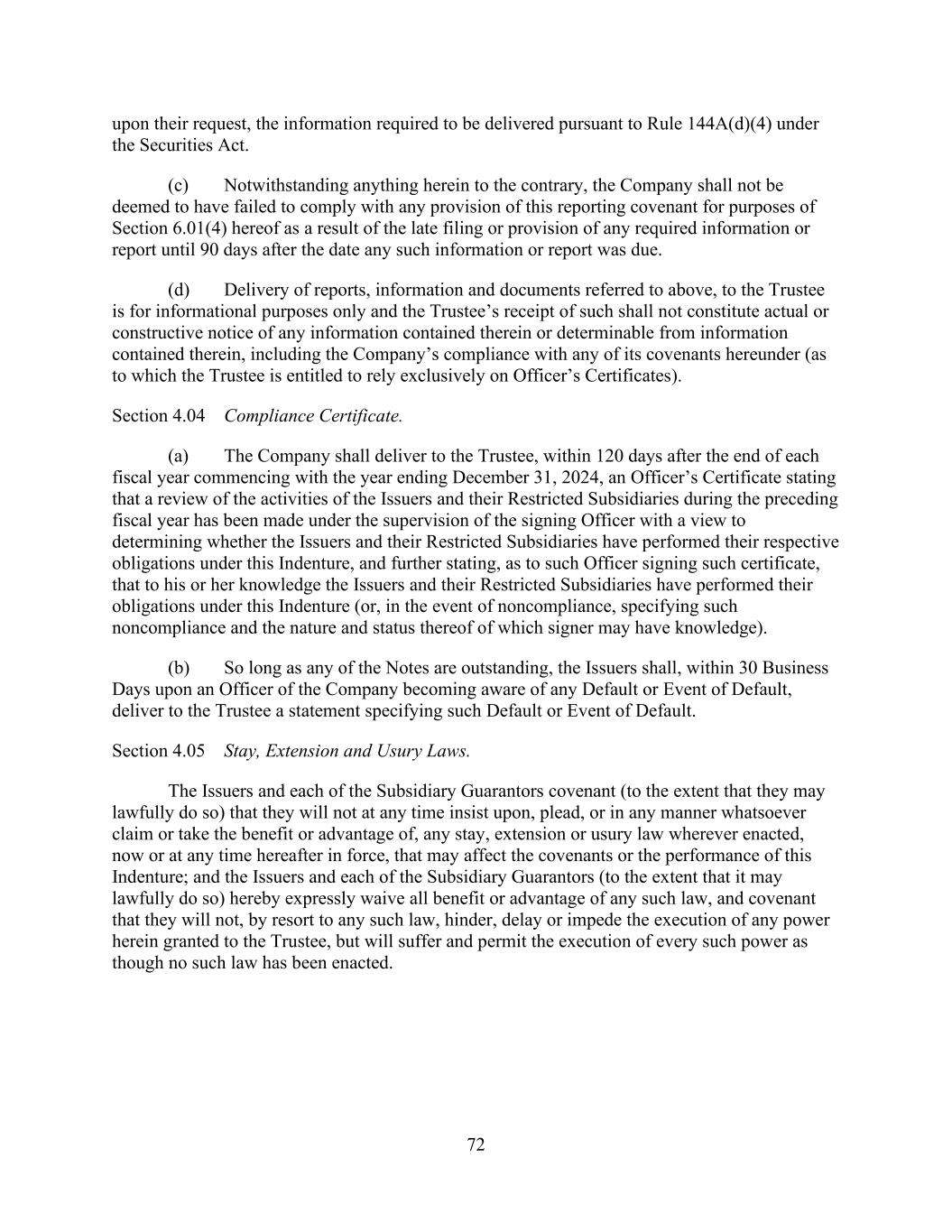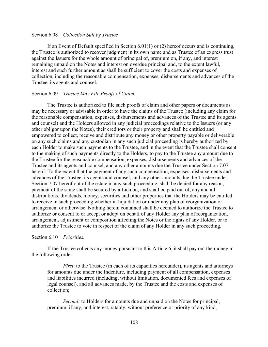 - iii - Section 9.11. Derivatives Contracts. ................................................................................123126 ARTICLE X. Default ...........................................................................................................123126 Section 10.1. Events of Default. ......................................................................................123126 Section 10.2. Remedies Upon Event of Default. .............................................................126129 Section 10.3. Marshaling; Payments Set Aside. ..............................................................128131 Section 10.4. Allocation of Proceeds. ..............................................................................128131 Section 10.5. Letter of Credit Collateral Account. ..........................................................129132 Section 10.6. Rescission of Acceleration by Requisite Lenders. .....................................130133 Section 10.7. Performance by Administrative Agent. .....................................................130134 Section 10.8. Rights Cumulative. ....................................................................................131134 ARTICLE XI. The Administrative Agent ............................................................................131135 Section 11.1. Appointment and Authorization. ...............................................................131135 Section 11.2. Administrative Agent as Lender. ...............................................................132136 Section 11.3. Approvals of Lenders. ................................................................................133136 Section 11.4. Notice of Events of Default. ......................................................................133136 Section 11.5. Administrative Agent’s Reliance. ..............................................................133137 Section 11.6. Indemnification of Administrative Agent. .................................................134137 Section 11.7. Lender Credit Decision, Etc. ......................................................................135138 Section 11.8. Successor Administrative Agent. ...............................................................135139 Section 11.9. Titled Agents. .............................................................................................136140 Section 11.10. Additional ERISA Matters. ......................................................................137140 Section 11.11. Specified Derivatives Contracts and Specified Cash Management Agreements. ........................................................................................137141 Section 11.12. Erroneous Payments.................................................................................138141 ARTICLE XII. Miscellaneous .............................................................................................140143 Section 12.1. Notices. ......................................................................................................140143 Section 12.2. Expenses. ...................................................................................................143146 Section 12.3. Setoff. .........................................................................................................144147 Section 12.4. Litigation; Jurisdiction; Other Matters; Waivers. ......................................144148 Section 12.5. Successors and Assigns..............................................................................145149 Section 12.6. Amendments and Waivers. ........................................................................150154 Section 12.7. Nonliability of Administrative Agent and Lenders. ..................................153156 Section 12.8. Confidentiality. ..........................................................................................153157 Section 12.9. Indemnification. .........................................................................................154158 Section 12.10. Acknowledgement Regarding Any Supported QFCs. .............................156159 Section 12.11. Termination; Survival. .............................................................................157160 Section 12.12. Severability of Provisions. .......................................................................157161 Section 12.13. GOVERNING LAW. ...............................................................................157161 Section 12.14. Counterparts. ............................................................................................157161 Section 12.15. No Advisory or Fiduciary Relationship. ..................................................158162 Section 12.16. Obligations with Respect to Loan Parties and Subsidiaries.....................159162 Section 12.17. Independence of Covenants. ....................................................................159163 Section 12.18. Limitation of Liability..............................................................................159163 Section 12.19. Entire Agreement. ....................................................................................159163 Section 12.20. Construction. ............................................................................................159163