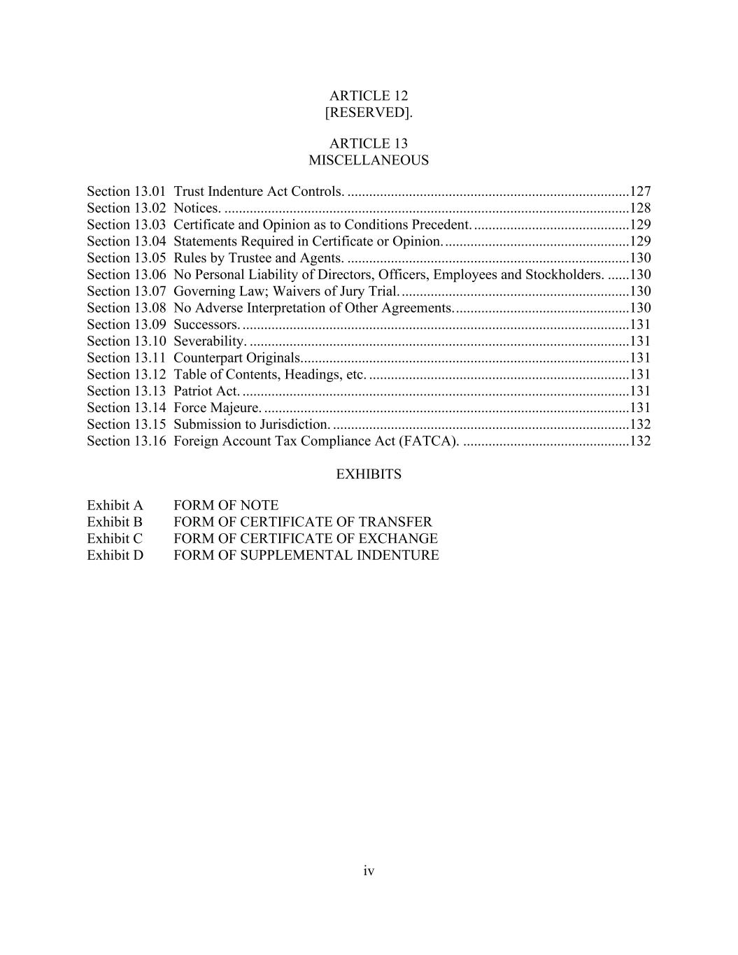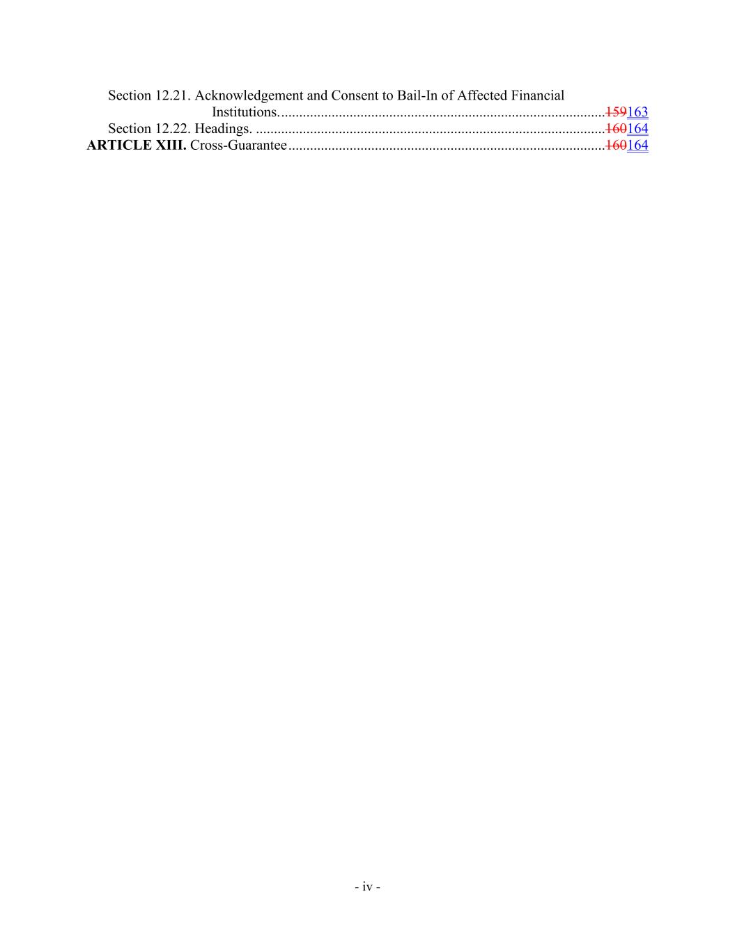- iv - Section 12.21. Acknowledgement and Consent to Bail-In of Affected Financial Institutions. ..........................................................................................159163 Section 12.22. Headings. .................................................................................................160164 ARTICLE XIII. Cross-Guarantee ........................................................................................160164