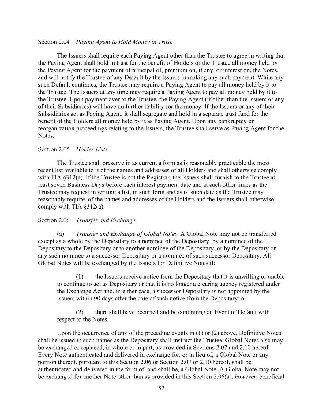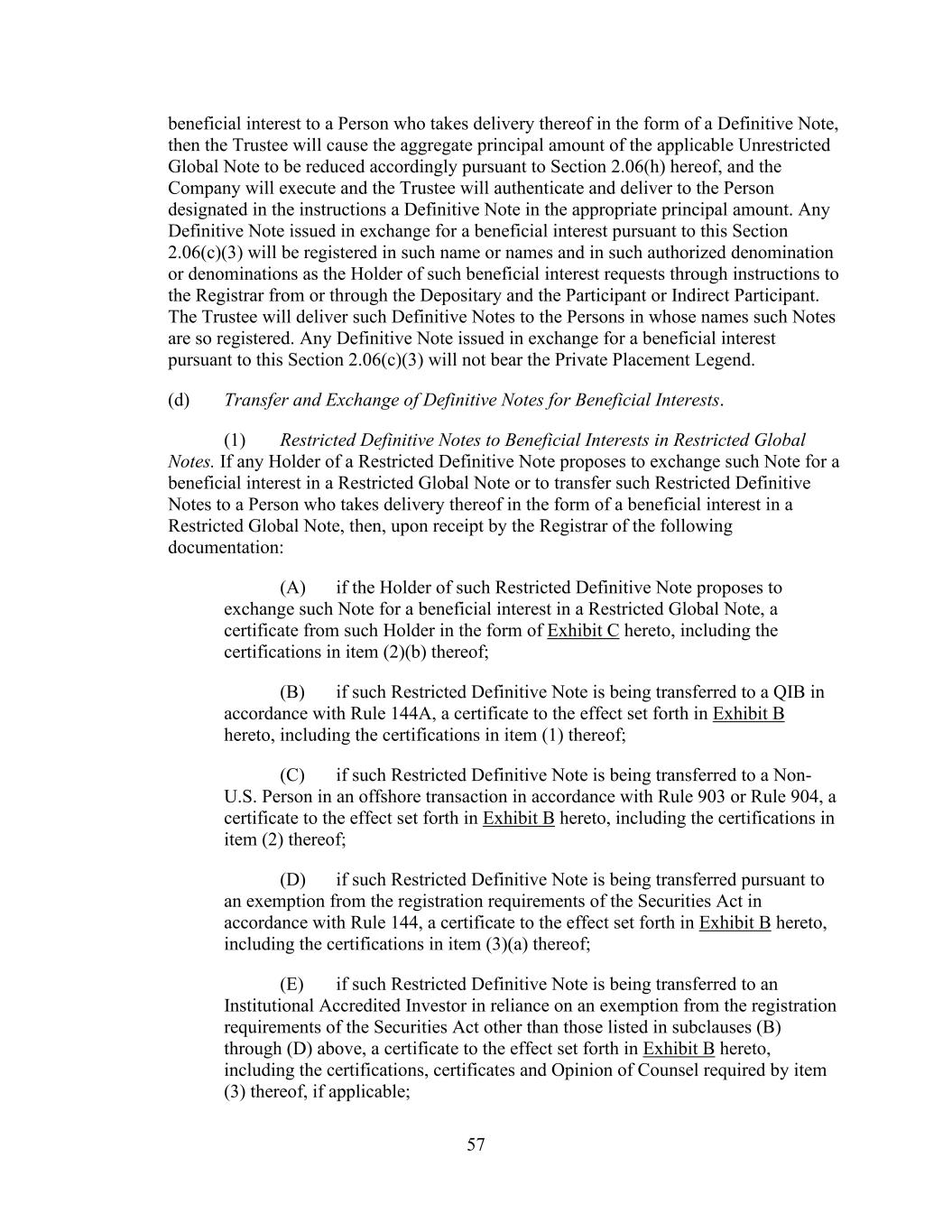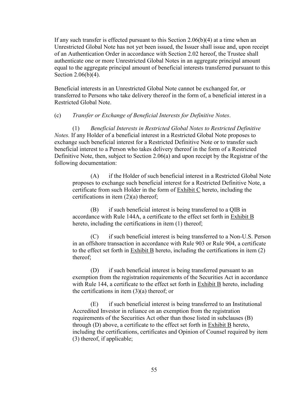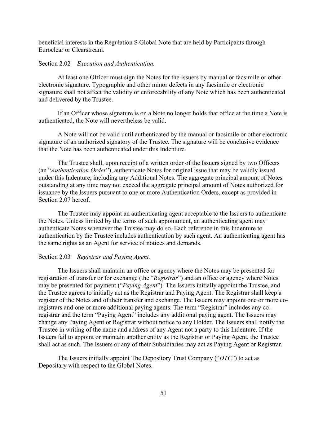 - 151 - shall be entitled to receive a customary indemnity agreement of the type described in Section 2.12.(c)(ii)(A) from such transferor Lender). (v) No Assignment to Certain Persons. No such assignment shall be made to (A) the Company or any of the Company’s Affiliates or Subsidiaries or (B) to any Defaulting Lender or any of its Subsidiaries, or to any Person who, upon becoming a Lender hereunder, would constitute a Defaulting Lender or a Subsidiary thereof. (vi) No Assignment to Natural Persons. No such assignment shall be made to a natural Person (or a holding company, investment vehicle or trust for, or owned and operated for the primary benefit of, a natural Person). (vii) Certain Additional Payments. In connection with any assignment of rights and obligations of any Defaulting Lender hereunder, no such assignment shall be effective unless and until, in addition to the other conditions thereto set forth herein, the parties to the assignment shall make such additional payments to the Administrative Agent in an aggregate amount sufficient, upon distribution thereof as appropriate (which may be outright payment, purchases by the assignee of participations or subparticipations, or other compensating actions, including funding, with the consent of the Company, the relevant Borrower and the Administrative Agent, the applicable pro rata share of Loans previously requested but not funded by the Defaulting Lender, to each of which the applicable assignee and assignor hereby irrevocably consent), to (x) pay and satisfy in full all payment liabilities then owed by such Defaulting Lender to the Administrative Agent, each Issuing Bank and each other Lender hereunder (and interest accrued thereon), and (y) acquire (and fund as appropriate) its full pro rata share of all Loans and participations in Letters of Credit in accordance with its Revolving Commitment Percentage. Notwithstanding the foregoing, in the event that any assignment of rights and obligations of any Defaulting Lender hereunder shall become effective under Applicable Law without compliance with the provisions of this paragraph, then the assignee of such interest shall be deemed to be a Defaulting Lender for all purposes of this Agreement until such compliance occurs. Subject to acceptance and recording thereof by the Administrative Agent pursuant to the immediately following subsection (c), from and after the effective date specified in each Assignment and Assumption, the assignee thereunder shall be a party to this Agreement and, to the extent of the interest assigned by such Assignment and Assumption, have the rights and obligations of a Lender under this Agreement, and the assigning Lender thereunder shall, to the extent of the interest assigned by such Assignment and Assumption, be released from its obligations under this Agreement (and, in the case of an Assignment and Assumption covering all of the assigning Lender’s rights and obligations under this Agreement, such Lender shall cease to be a party hereto) but shall continue to be entitled to the benefits of Sections 4.4., 12.2. and 12.9. and the other provisions of this Agreement and the other Loan Documents as provided in Section 12.11. with respect to facts and circumstances occurring prior to the effective date of such assignment; provided, that except to the extent otherwise expressly agreed by the affected parties, no assignment by a Defaulting Lender will constitute a waiver or release of any claim of any party hereunder arising from that Lender having been a Defaulting Lender. Any assignment or transfer by a Lender of rights or obligations under this Agreement that does not comply with this paragraph shall be treated for purposes of this Agreement as a sale by such Lender of a participation in such rights and obligations in accordance with the immediately following subsection (d). (c) Register. The Administrative Agent, acting solely for this purpose as a non-fiduciary agent of the Borrowers, shall maintain at the Principal Office a copy of each Assignment and Assumption delivered to it and a register for the recordation of the names and addresses of the Lenders, and the Revolving Commitments of, and principal amounts (and stated interest) of the Loans owing to, each