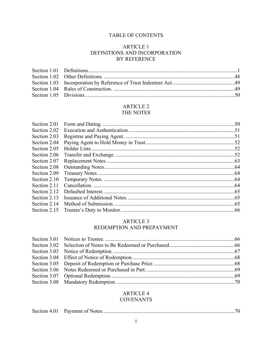 - i - TABLE OF CONTENTS ARTICLE I. Definitions .................................................................................................................1 Section 1.1. Definitions..............................................................................................................1 Section 1.2. GAAP; Financial Covenants; General; References to Eastern Time...............5053 Section 1.3. Rates. ................................................................................................................5254 Section 1.4. Amendment and Restatement. .........................................................................5254 ARTICLE II. Credit Facility ....................................................................................................5355 Section 2.1. Revolving Loans. .............................................................................................5355 Section 2.2. [Reserved]Term Loans.....................................................................................5557 Section 2.3. Bid Rate Loans. ................................................................................................5557 Section 2.4. Letters of Credit. ..............................................................................................5860 Section 2.5. [Reserved]. .......................................................................................................6466 Section 2.6. Rates and Payment of Interest on Loans. .........................................................6466 Section 2.7. Number of Interest Periods. .............................................................................6568 Section 2.8. Repayment of Loans. .......................................................................................6568 Section 2.9. Prepayments. ....................................................................................................6668 Section 2.10. Continuation. ..................................................................................................6669 Section 2.11. Conversion. ....................................................................................................6769 Section 2.12. Notes. .............................................................................................................6770 Section 2.13. Voluntary Reductions of the Revolving Commitments. ................................6870 Section 2.14. Extension of Revolving Credit Termination Date. ........................................6871 Section 2.15. Expiration Date of Letters of Credit Past Revolving Commitment Termination. ............................................................................................6971 Section 2.16. Amount Limitations. ......................................................................................6972 Section 2.17. Increase in Aggregate Revolving Commitments and Incremental Term Loans. ......................................................................................................6972 Section 2.18. Funds Transfer Disbursements. .....................................................................7274 Section 2.19. Designation of Subsidiary Borrowers. ...........................................................7275 Section 2.20. Permitted Extension Amendments. ................................................................7375 ARTICLE III. Payments, Fees and Other General Provisions ................................................7578 Section 3.1. Payments. .........................................................................................................7578 Section 3.2. Pro Rata Treatment. .........................................................................................7678 Section 3.3. Sharing of Payments by Lenders. ....................................................................7679 Section 3.4. Several Obligations. .........................................................................................7780 Section 3.5. Fees. ................................................................................................................7780 Section 3.6. Computations. ..................................................................................................7981 Section 3.7. Usury. ...............................................................................................................7981 Section 3.8. Statements of Account. ....................................................................................7982 Section 3.9. Defaulting Lenders...........................................................................................7982 Section 3.10. Taxes. .............................................................................................................8385 ARTICLE IV. Yield Protection, Etc. .......................................................................................8689 Section 4.1. Additional Costs; Capital Adequacy. ...............................................................8689 Section 4.2. Changed Circumstances ...................................................................................8891 Section 4.3. [Reserved.] .......................................................................................................9194 Section 4.4. Compensation. .................................................................................................9194 Section 4.5. Treatment of Affected Loans. ..........................................................................9295