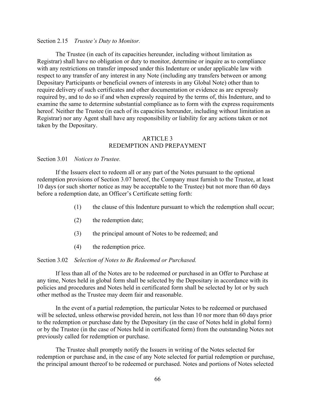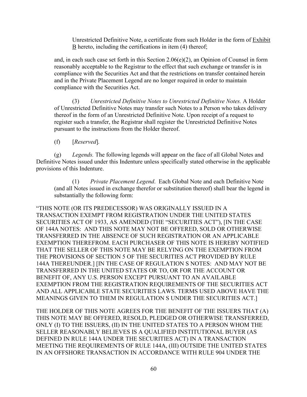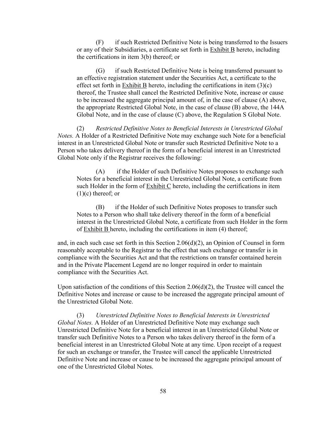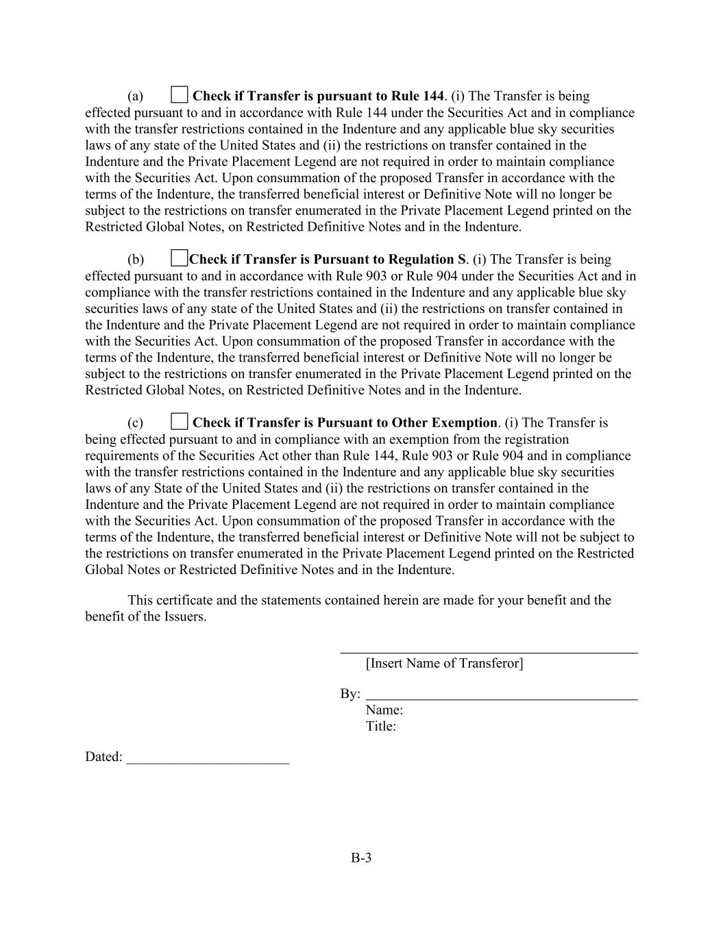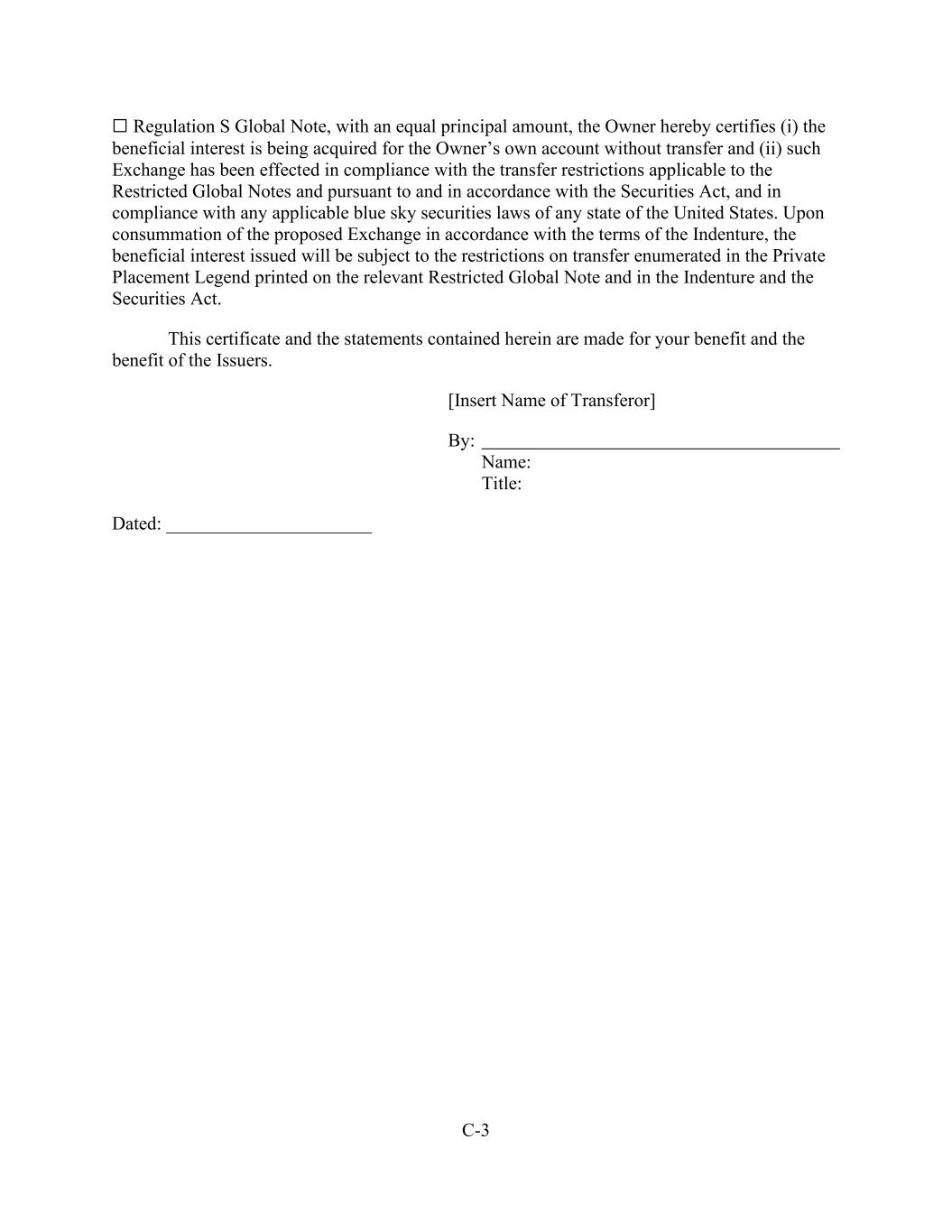 - 153 - Administrative Agent (in its capacity as Administrative Agent) shall have no responsibility for maintaining a Participant Register. (e) Certain Pledges. Any Lender may at any time pledge or assign a security interest in all or any portion of its rights under this Agreement to secure obligations of such Lender, including any pledge or assignment to secure obligations to a Federal Reserve Bank; provided that no such pledge or assignment shall release such Lender from any of its obligations hereunder or substitute any such pledgee or assignee for such Lender as a party hereto. (f) No Registration. Each Lender agrees that, without the prior written consent of the Borrower and the Administrative Agent, it will not make any assignment hereunder in any manner or under any circumstances that would require registration or qualification of, or filings in respect of, any Loan or Note under the Securities Act or any other securities laws of the United States of America or of any other jurisdiction. (g) Designated Lenders. Any Lender (each, a “Designating Lender”) may at any time after the Investment Grade Pricing Effective Date, designate one Designated Lender to fund Bid Rate Loans on behalf of such Designating Lender subject to the terms of this subsection, and the provisions in the immediately preceding subsections (b) and (d) shall not apply to such designation. No Lender may designate more than one Designated Lender. The parties to each such designation shall execute and deliver to the Administrative Agent for its acceptance a Designation Agreement. Upon such receipt of an appropriately completed Designation Agreement executed by a Designating Lender and a designee representing that it is a Designated Lender, the Administrative Agent will accept such Designation Agreement and give prompt notice thereof to the Company, whereupon (i) the Company shall execute and deliver to the Designating Lender, to the extent requested by such Designated Lender, a Bid Rate Note payable to the order of the Designated Lender, (ii) from and after the effective date specified in the Designation Agreement, the Designated Lender shall become a party to this Agreement with a right to make Bid Rate Loans on behalf of its Designating Lender pursuant to Section 2.3. after the Company has accepted a Bid Rate Loan (or portion thereof) of the Designating Lender, and (iii) the Designated Lender shall not be required to make payments with respect to any obligations in this Agreement except to the extent of excess cash flow of such Designated Lender which is not otherwise required to repay obligations of such Designated Lender which are then due and payable; provided, however, that regardless of such designation and assumption by the Designated Lender, the Designating Lender shall be and remain obligated to the Company, the Administrative Agent and the Lenders for each and every of the obligations of the Designating Lender and its related Designated Lender with respect to this Agreement, including, without limitation, any indemnification obligations under Section 11.6. and any sums otherwise payable to the Company by the Designated Lender. Each Designating Lender shall serve as the agent of the Designated Lender and shall on behalf of, and to the exclusion of, the Designated Lender: (i) receive any and all payments made for the benefit of the Designated Lender and (ii) give and receive all communications and notices and take all actions hereunder, including, without limitation, votes, approvals, waivers, consents and amendments under or relating to this Agreement and the other Loan Documents. Any such notice, communication, vote, approval, waiver, consent or amendment shall be signed by the Designating Lender as agent for the Designated Lender and shall not be signed by the Designated Lender on its own behalf and shall be binding on the Designated Lender to the same extent as if signed by the Designated Lender on its own behalf. The Company, the Administrative Agent and the Lenders may rely thereon without any requirement that the Designated Lender sign or acknowledge the same. No Designated Lender may assign or transfer all or any portion of its interest hereunder or under any other Loan Document, other than assignments to the Designating Lender which originally designated such Designated Lender. The Company, the Lenders and the Administrative Agent each hereby agrees that it will not institute against any Designated Lender or join any other Person in instituting against any Designated Lender any bankruptcy, reorganization, arrangement, insolvency or liquidation