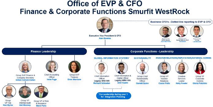 I am pleased to share that we are making progress with our integration planning. In my last communications on 13 March 2024, I indicated that I would have a further update regarding the future leadership teams of Smurfit WestRock. All of the appointments and structures in this announcement will only be applicable upon the completion (‘Completion’) of the proposed combination between Smurfit Kappa and WestRock, which is still subject to the satisfaction of the required closing conditions, including shareholder and regulatory approvals.